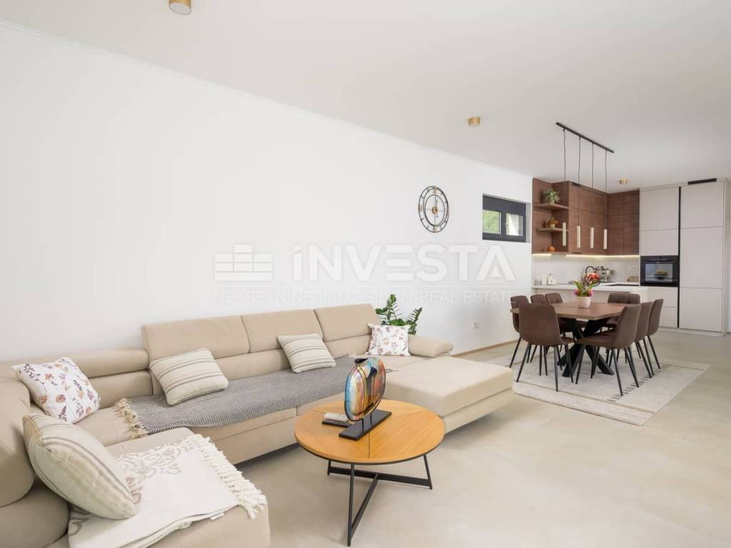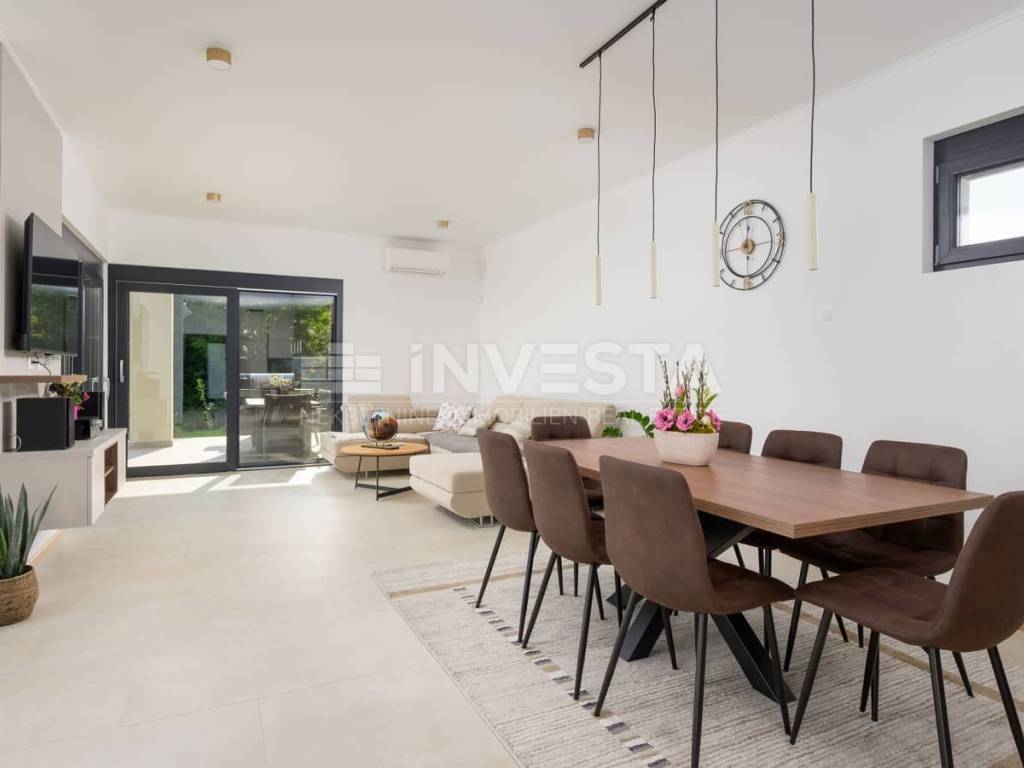Nel cuore del paesaggio istriano, a pochi minuti di auto da Rovigno e dal Canale di Leme, è in vendita un’elegante villa a piano terra che unisce architettura contemporanea, comfort e totale privacy. Situata su un lotto con vista aperta sul verde, questa proprietà offre la perfetta armonia tra design moderno e ambiente naturale.