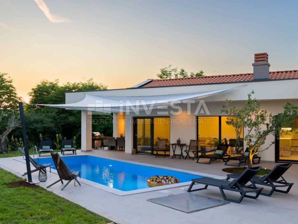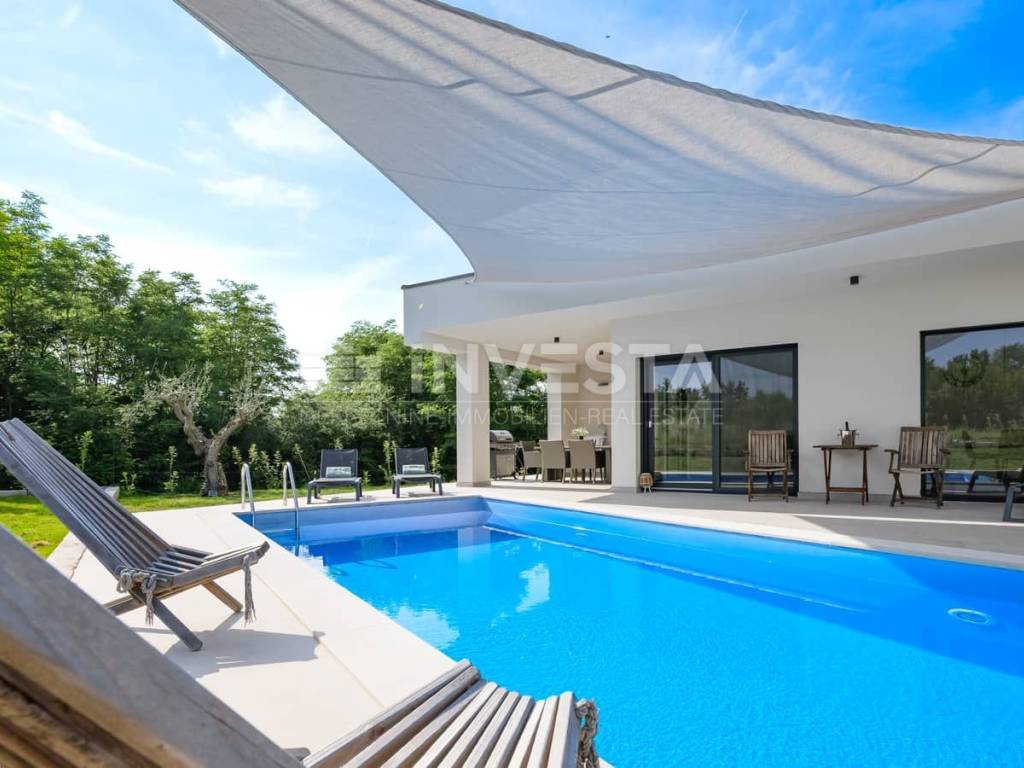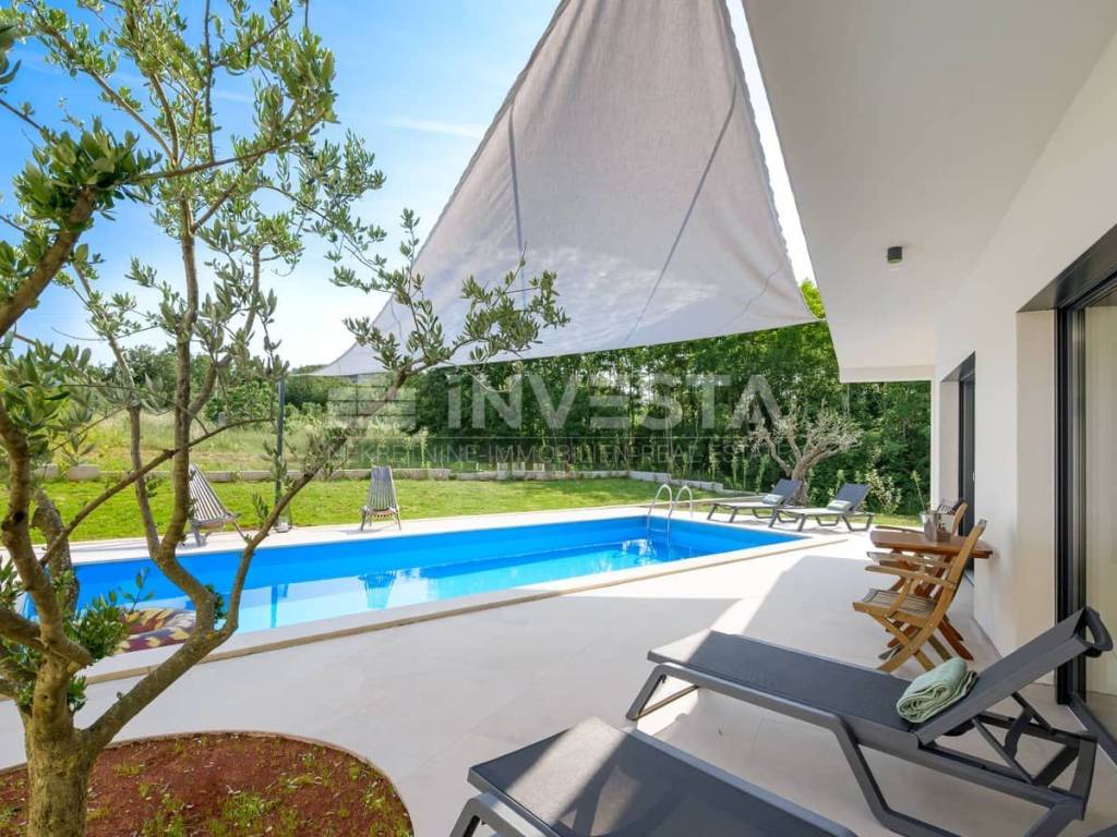 Moderna villa istriana con piscina, tranquillità e vista sul verde — vicino a Rovigno