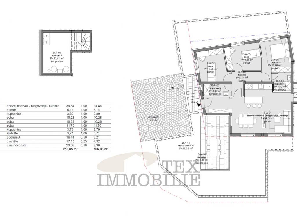 Questo ampio appartamento, con una superficie netta di 91,73 m², presenta una disposizione ben pensata, comprensiva di un ampio soggiorno con cucina e zona pranzo, tre comode camere da letto e due bagni. Il cortile associato con una superficie di 116,92 m², un seminterrato di 16,41 m² e due posti auto lo rendono ulteriormente adatto per una vita confortevole. Per il vostro comfort, l'appartamento sarà dotato di riscaldamento a pavimento e di un condizionatore d'aria inverter per un riscaldamento e raffreddamento ottimali durante tutto l'anno. Un'ottima opportunità per la vostra nuova casa o per affitti turistici!