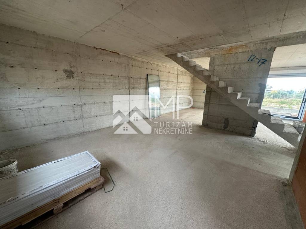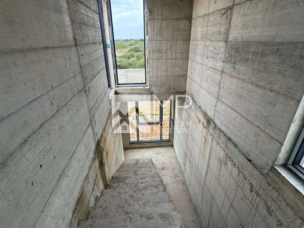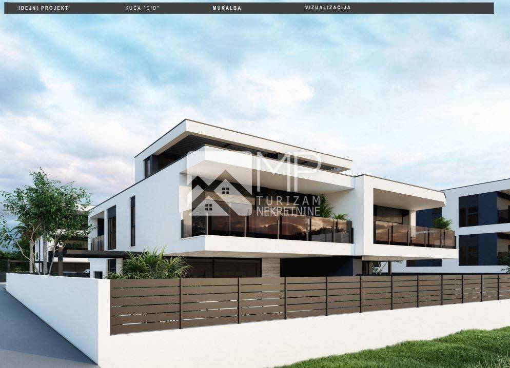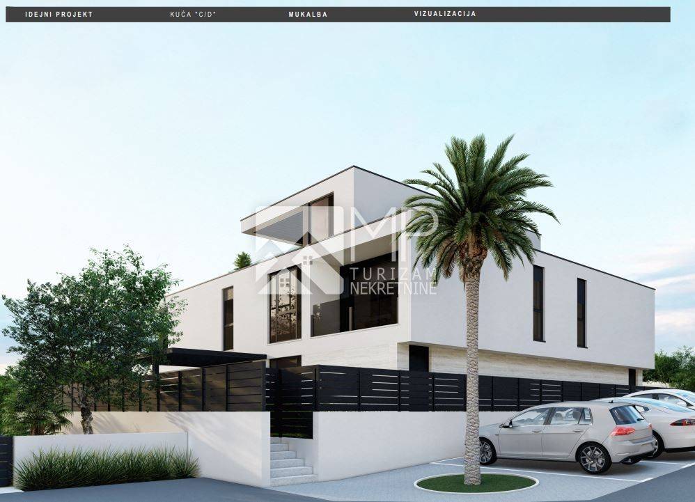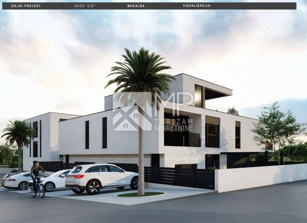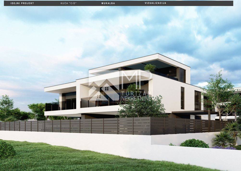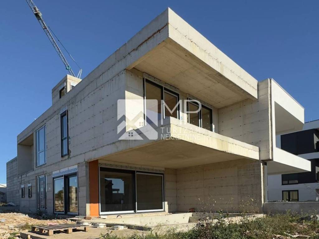 Right there, just 500 meters from the sea, is located this beautiful modern house in the Roh-bau phase, located on a plot of 340m2.