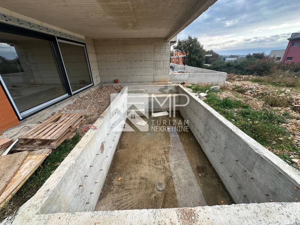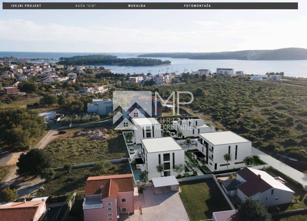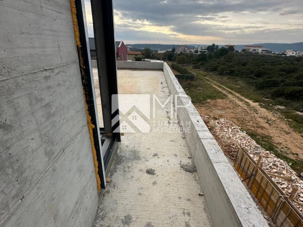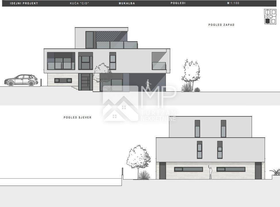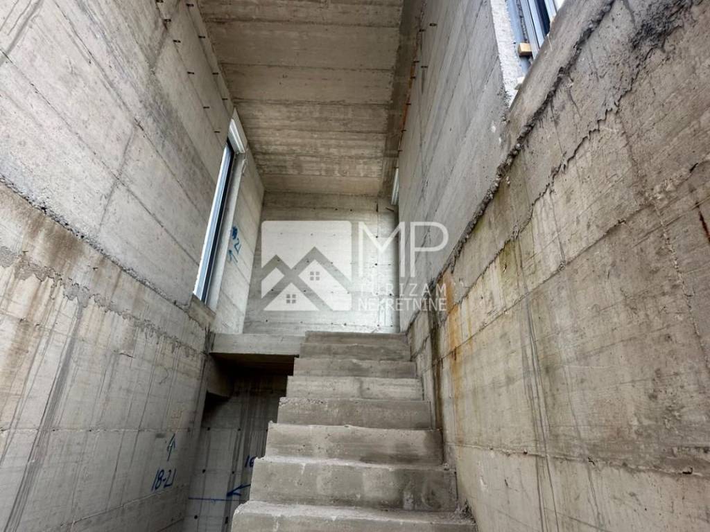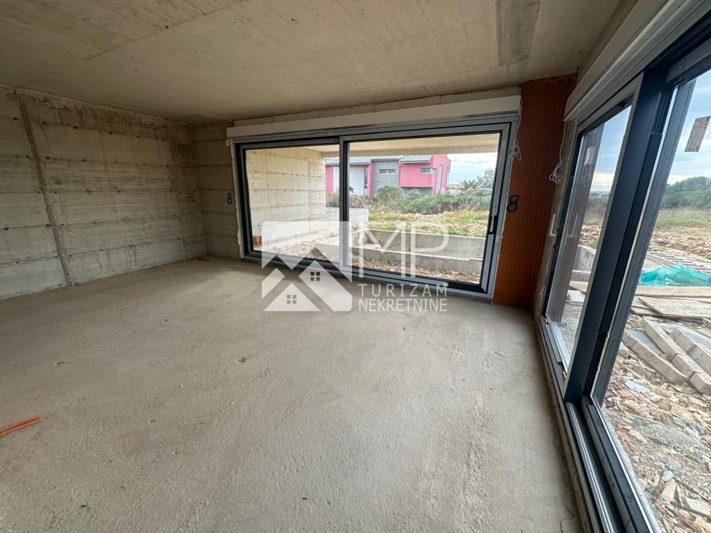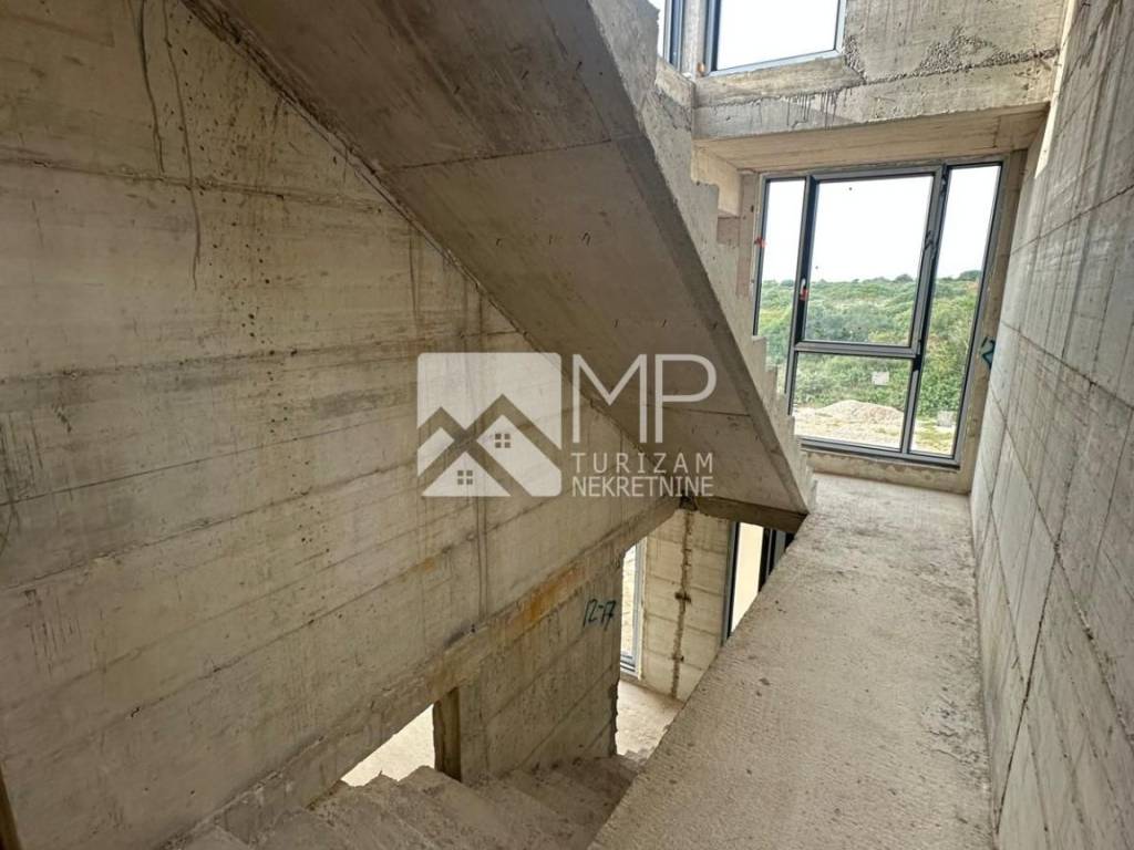 Right there, just 500 meters from the sea, is located this beautiful modern house in the Roh-bau phase, located on a plot of 340m2.