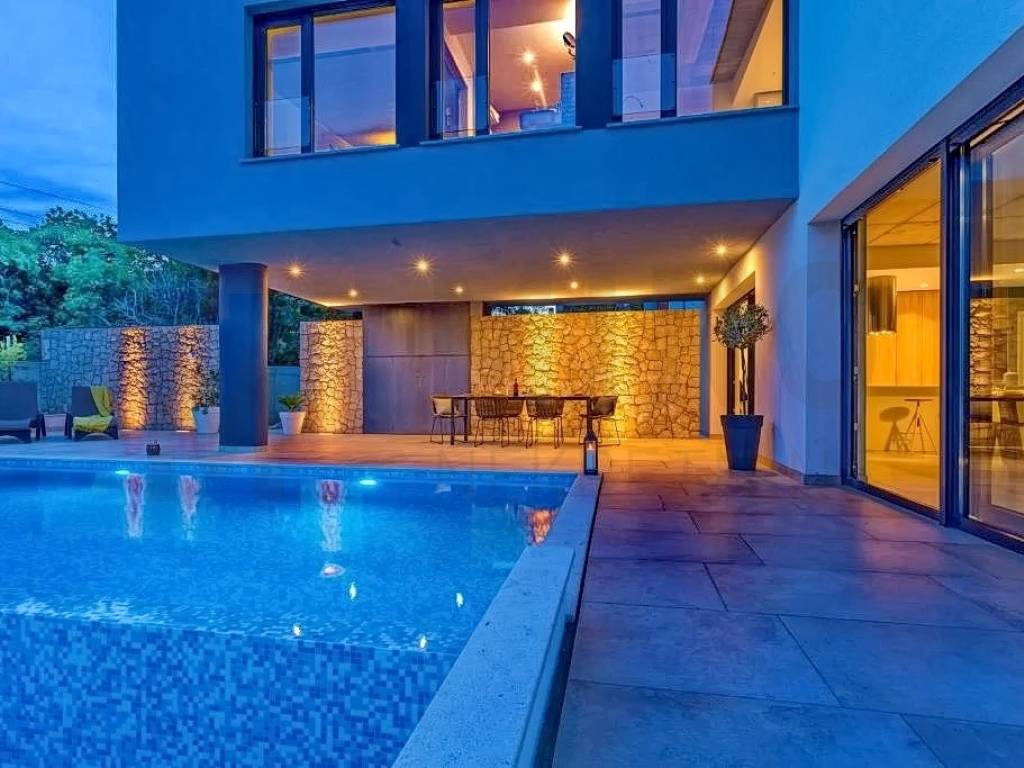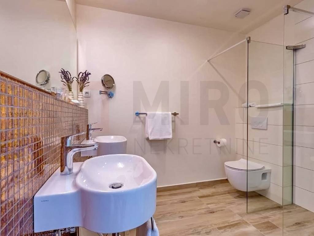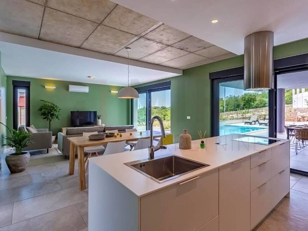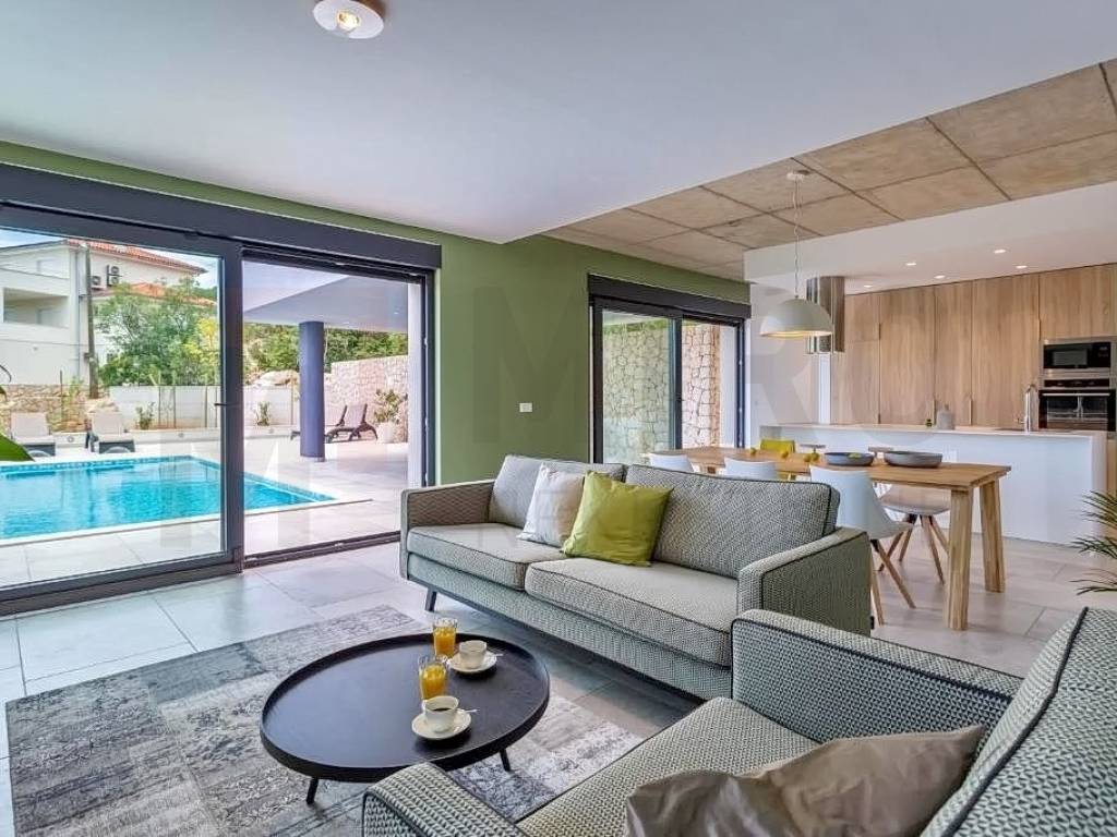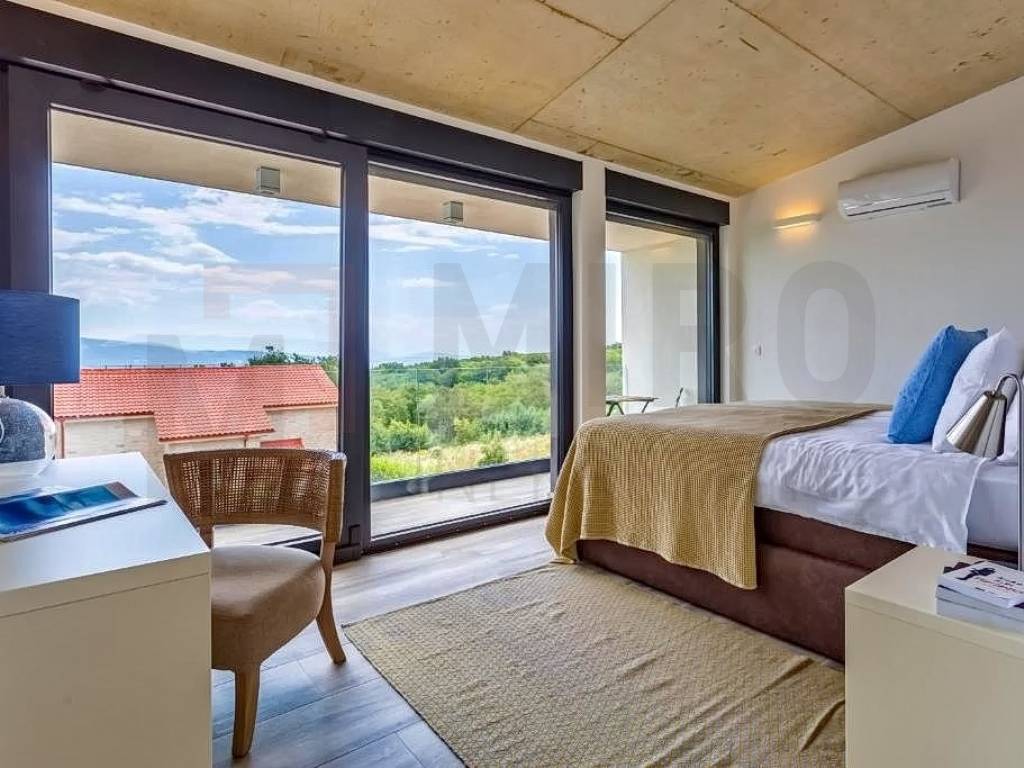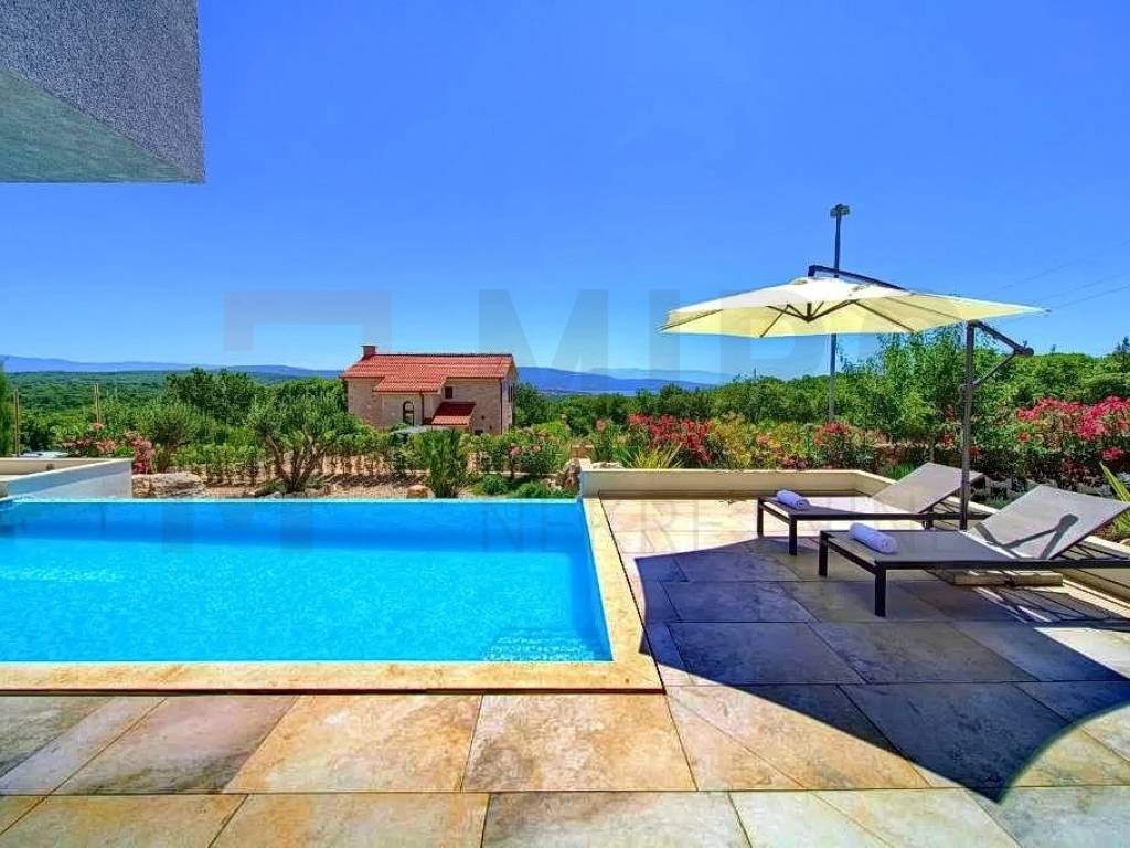 Krk, surroundings, Miro Nekretnine offers a luxurious villa with a swimming pool and sauna. The villa has a living area of 223 m2. The villa extends over three floors. In the basement there is a wellness area with a bathroom, a boiler room and a storage room. The ground floor consists of a spacious and airy living room, kitchen, dining room, toilet and an internal staircase leading to the first floor where there are three bedrooms each with their own bathroom and a terrace with a wonderful view of the sea. The equipment of the property includes only high-quality ceramics, PVC carpentry, high-quality sanitary ware, SAT TV, air conditioners in the rooms and the living room. The entire modern system of the house is on photovoltaic panels. The yard is decorated with Mediterranean plants, two cars can be parked in the yard of the property. In addition to all of the above, it should be noted that the property has a beautiful view of the sea. The owner of this house guarantees a quick and easy transfer of ownership to the buyer of this property. Contact us with confidence and find the Square of your home!