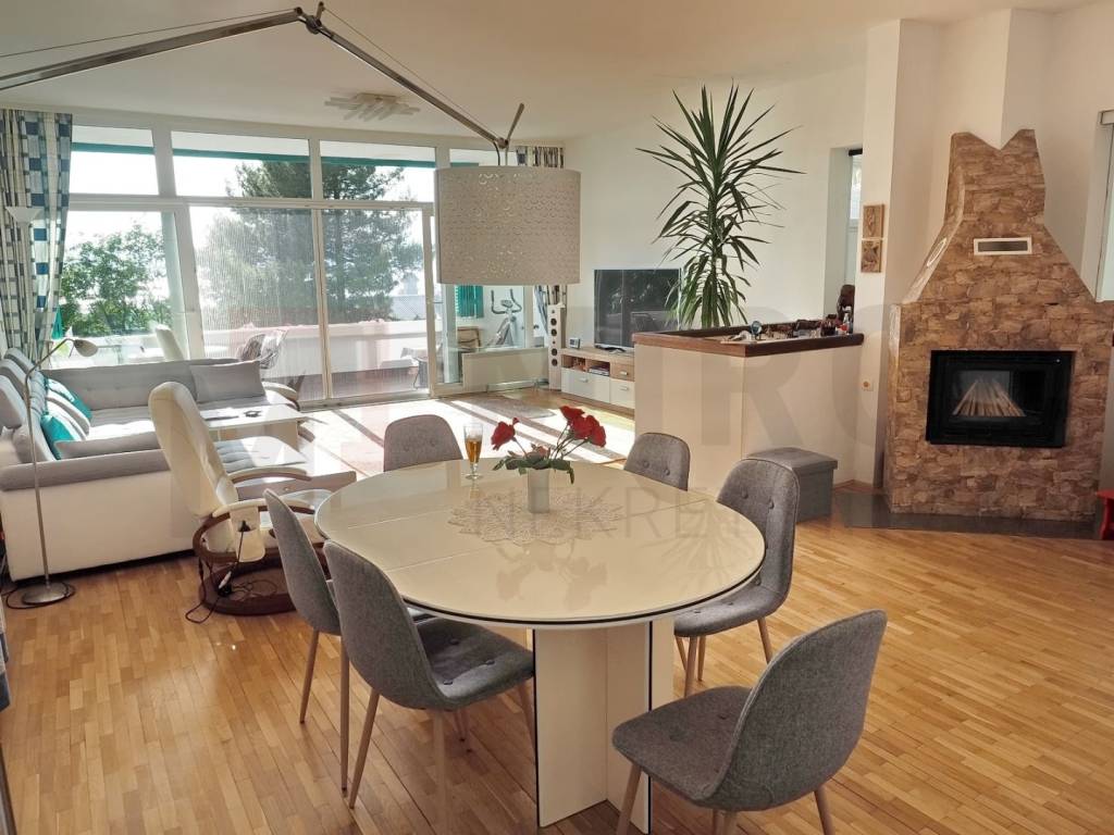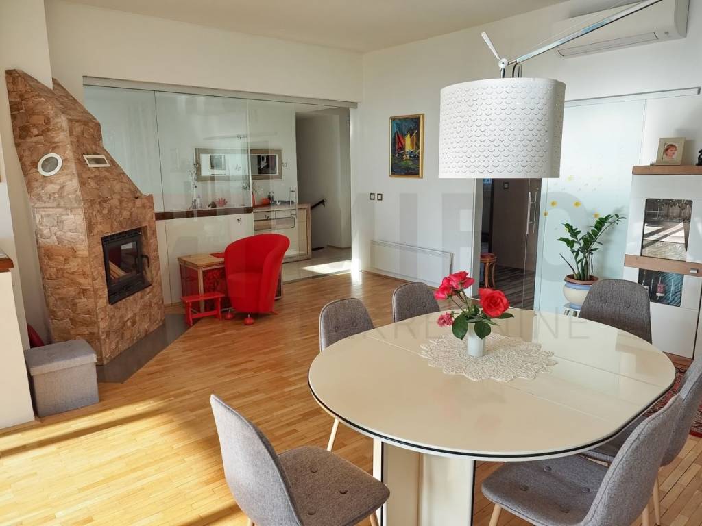 The island of Krk, Njivice, for sale is a completely adapted and modernly furnished semi-detached house with a total living area of 260 m2. The ground floor includes a living room with a kitchen and dining room, 3 bedrooms, 2 bathrooms, a toilet, a storage room, a cellar and 3 loggias. There are 3 parking spaces and an additional 2 in the garage on the beautifully landscaped garden. The house has an excellent layout concept, it is harmoniously decorated and is being sold as such. The location is beautiful, in an elevated position with a view of the sea, only 350 m from the sea and beaches and 1000 m from the center and all necessary facilities. The property is owned by a natural person. The seller of the house guarantees complete ownership papers. Visit us and find the square footage of your home!
