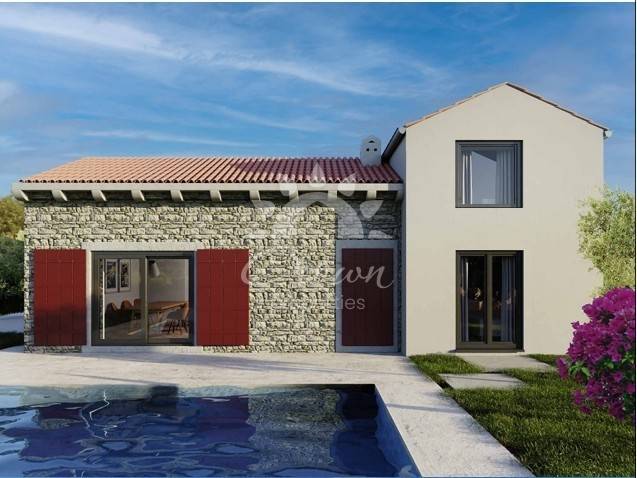 Previously, there was an old Istrian stone house on the plot, which was completely removed. Based on the original dimensions, a new project was developed, and a completely new house was built with modern foundations, improved thermal insulation, and all standards of contemporary construction. The stone from the original house was carefully preserved, fully shaped, and reused to clad the façade, giving the new building an authentic traditional Istrian character.
