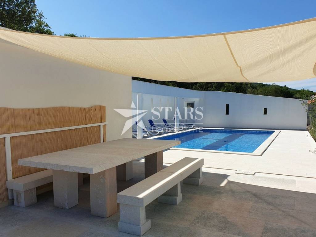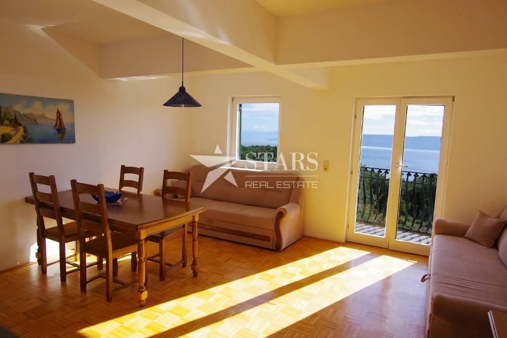 In a peaceful location, surrounded by nature and with an open sea view, only 10 km from the center of Labin, a 450 m² apartment house is for sale, fully furnished and equipped for tourist rental. The house extends over the ground floor and two upper floors and consists of a total of eight residential units, each with its own entrance, balcony or terrace, and sea view.