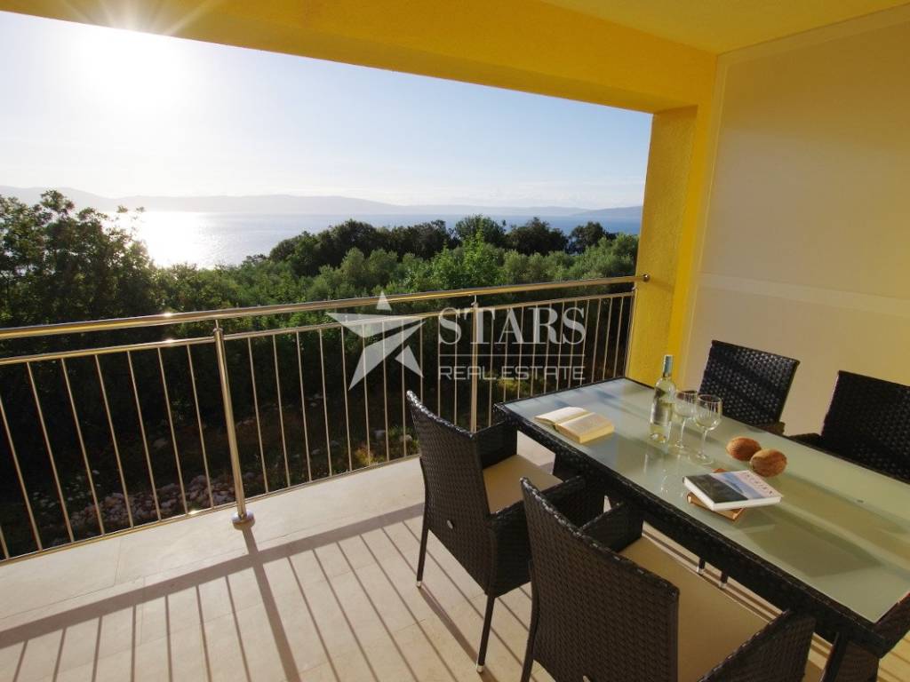 For sale is an apartment house with a swimming pool and a stunning panoramic view of the sea and the island of Cres, located in a peaceful area approximately 10 km from Labin and only a few minutes’ walk from the beach with crystal-clear sea.