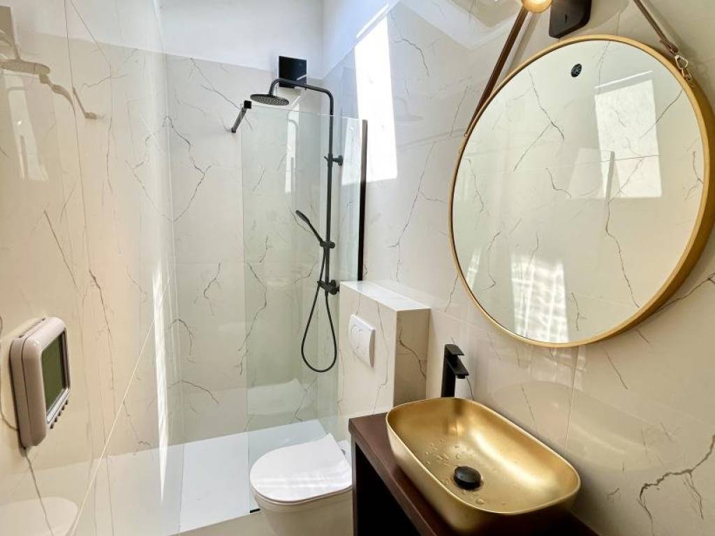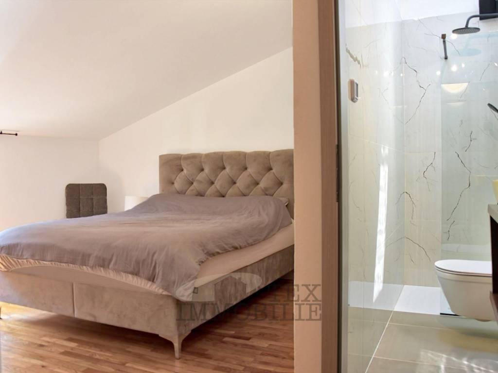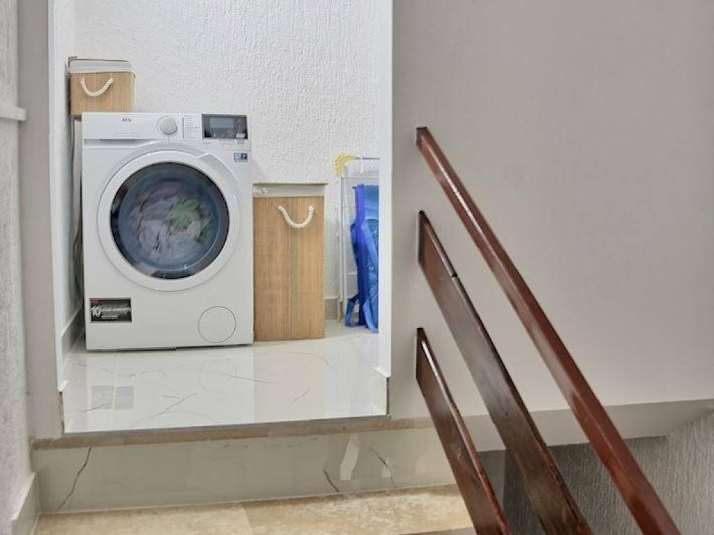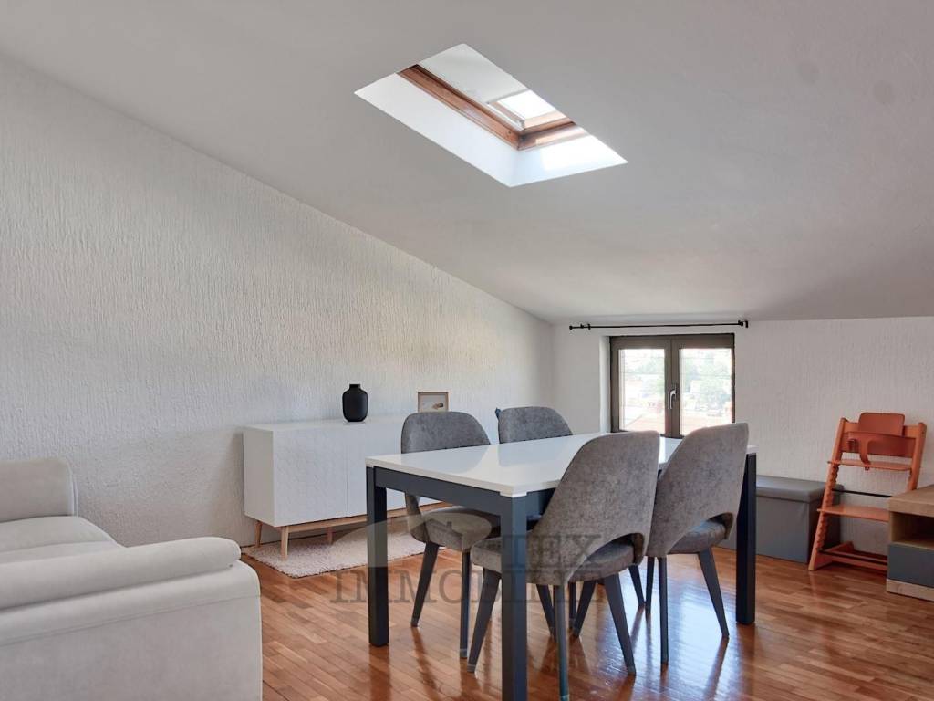 Un'ulteriore caratteristica di questo appartamento è una stanza ripostiglio in soffitta, ideale per riporre oggetti, e una zona lavanderia. L'appartamento è stato completamente ristrutturato nel 2024 ed è in vendita completamente arredato con mobili nuovi. Il riscaldamento a pavimento è installato in tutto l'appartamento dove sono presenti piastrelle in ceramica (nei bagni, in cucina, nella zona pranzo e nel corridoio). Inoltre, due ampie unità di climatizzazione inverter Toshiba sono utilizzate per il riscaldamento e il raffreddamento. Sono stati installati anche nuovi scuri in alluminio e zanzariere.