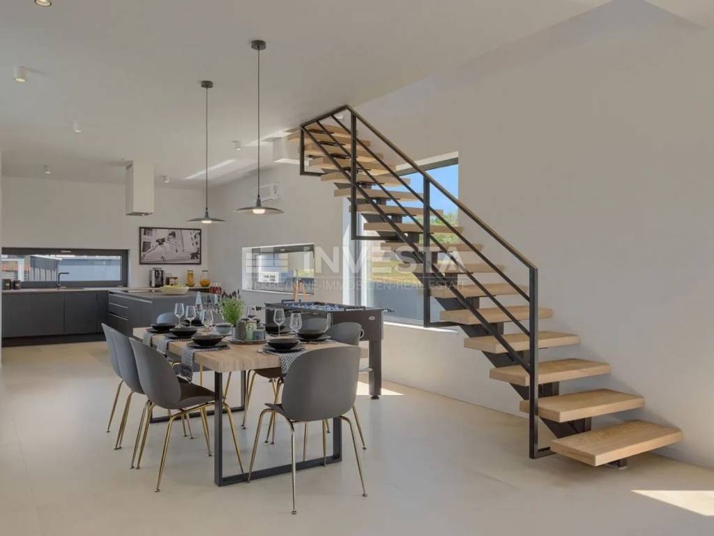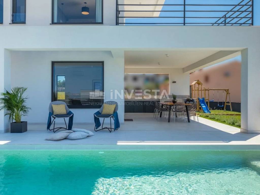 In vendita una lussuosa villa situata a Galižana, un piccolo borgo vicino al comune di Fažana e alla città di Vodnjan. Questa villa si estende su una superficie abitabile di 136 m², mentre il terreno ha una superficie di 367 m² con piscina.
