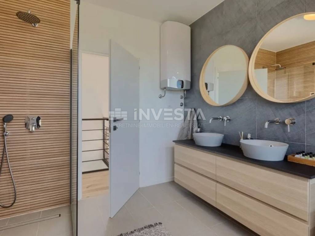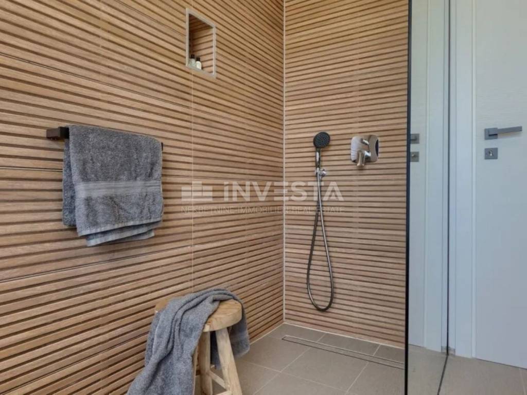 Al primo piano ci sono un bagno e tre camere da letto, una delle quali ha una propria terrazza con vista sul mare. Le altre due camere da letto condividono una spaziosa terrazza con una splendida vista sul mare e sull'arcipelago di Brioni. È importante notare che esiste la possibilità di un facile riadattamento e l'aggiunta di un terzo bagno in una delle camere da letto, poiché il proprietario attuale ha già predisposto la parete per questo.