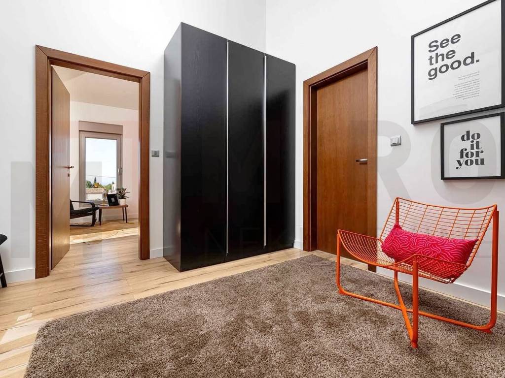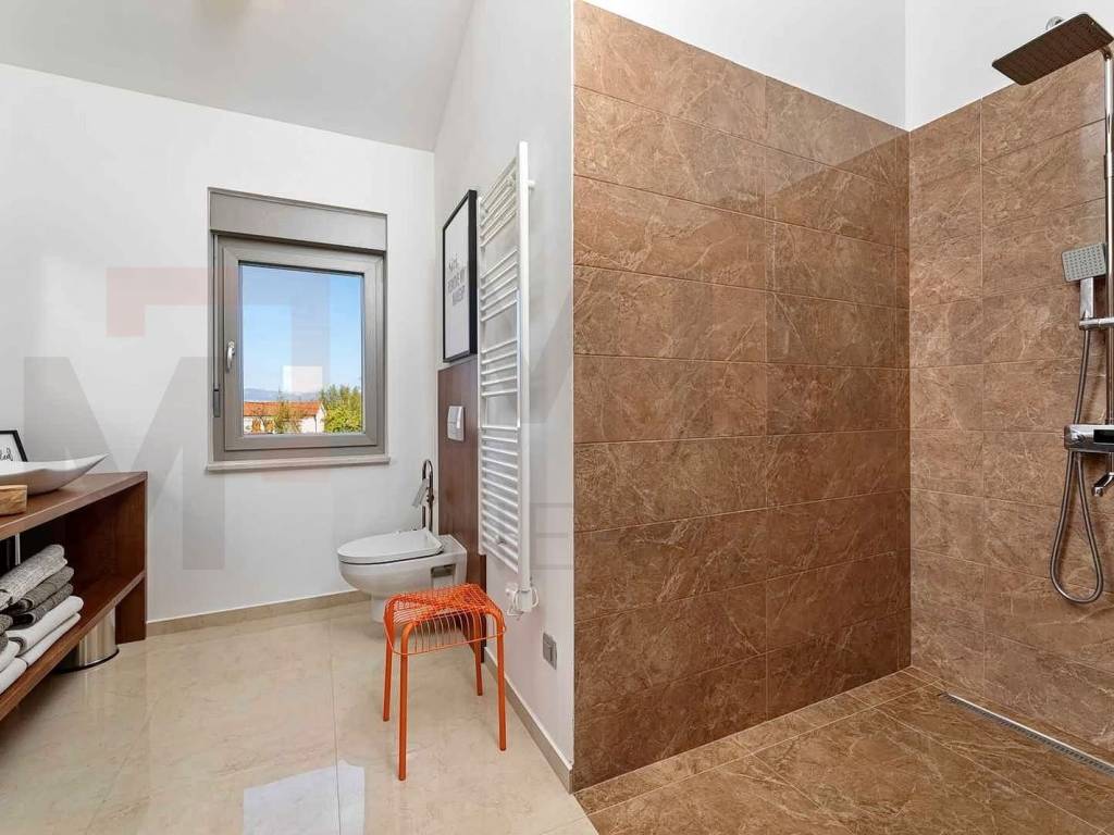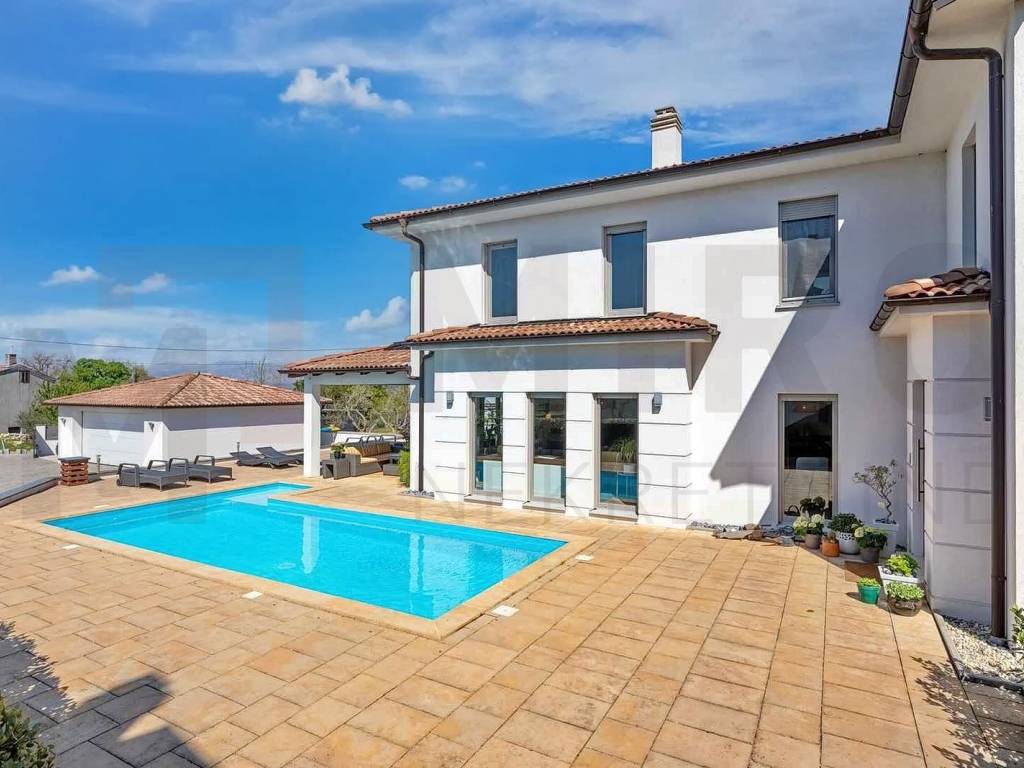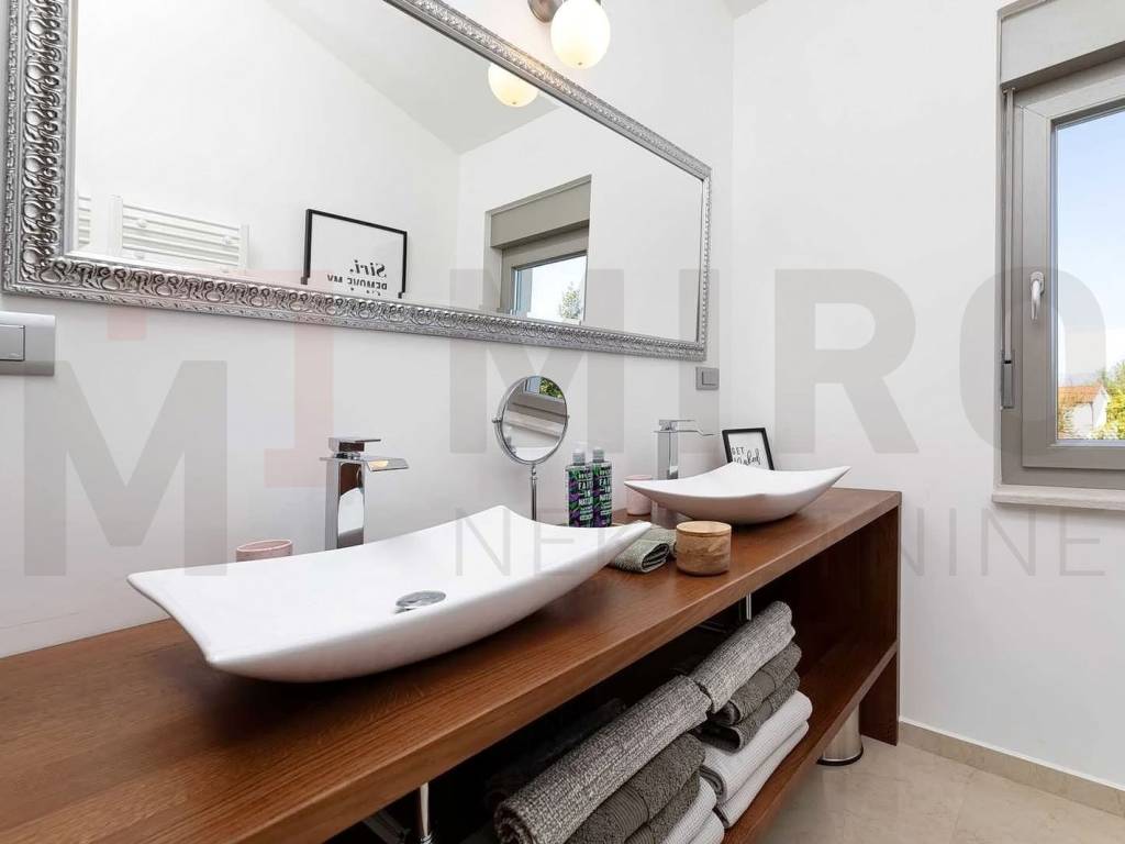 The island of Krk, a modern detached house with a swimming pool and a large garden in a quiet location. The house was built on a plot of 1407 m2, and consists of a ground floor and a first floor, living area of 276 m2. On the ground floor there is a hallway, a toilet and a large laundry room, as well as a room that can be arranged as a bedroom, a study, and a spacious open space with a kitchen, dining room, and living room. The living room leads to a covered terrace with a garden and swimming pool, a sun deck and a place to hang out with friends and family. Upstairs there is another smaller, more intimate living room and two more bathrooms and three bedrooms, one of which has its own bathroom and dressing room. Top quality construction and equipment, air conditioning, oil central heating. The interior of the property is fully equipped with the most modern designer furniture and devices and technical equipment of the latest generation. The owner of this real estate is a natural person, and when transferring its ownership to the buyer, real estate sales tax in the amount of 3% is calculated. The owner of the house guarantees proper ownership and technical documentation. Visit us and find the square footage of your home!