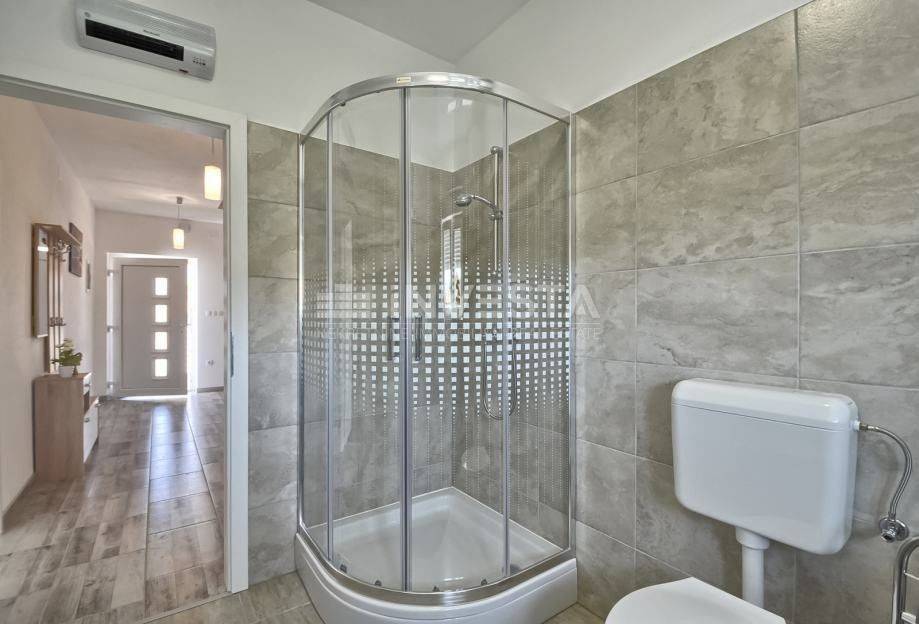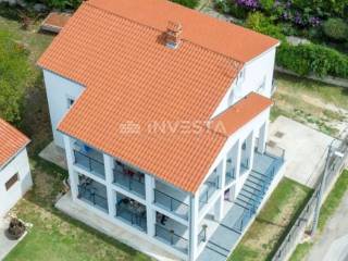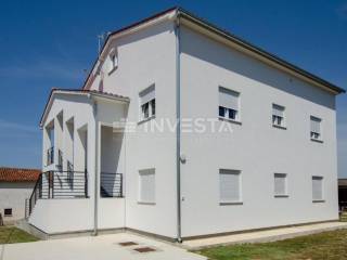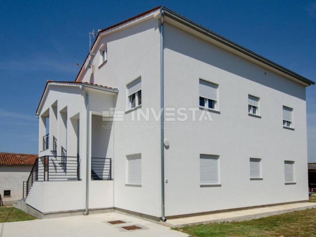 In vendita: Un appartamento in una casa di alta qualità di nuova costruzione nel comune di Ližnjan. La casa ha una superficie totale di 326,50 m² di spazio abitativo, suddivisa su due piani: piano terra e primo piano, dove sono situati due appartamenti identici. Il cortile ha una superficie di 746 m². Nella proprietà ci sono due edifici accessori: uno è un edificio agricolo di 93 m² con un parcheggio interno per 3 auto, mentre l'altro, di 20 m², può essere utilizzato come unità abitativa aggiuntiva, casetta vacanze, zona benessere, palestra, cantina per incontri o come centrale termica per la piscina. La casa è dotata di allacciamenti per elettricità e acqua, consentendo vari utilizzi.