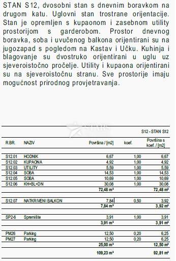 For sale is an apartment in a luxury new building with a total of 12 residential units, located in a quiet cul-de-sac, surrounded by greenery, with a beautiful view of Kastav and Učka.