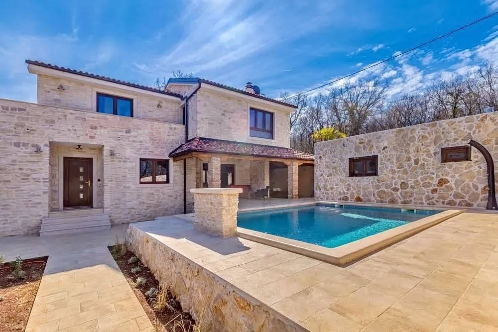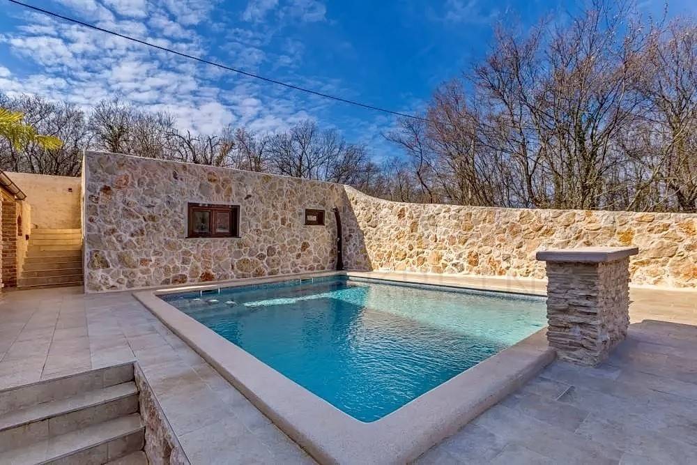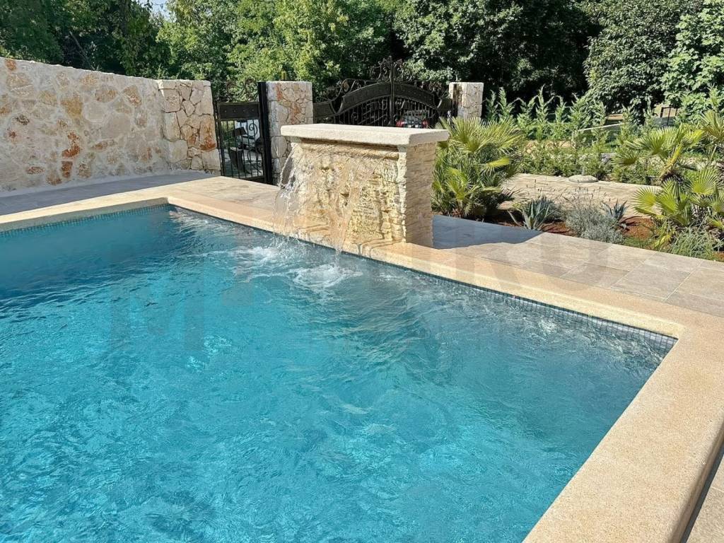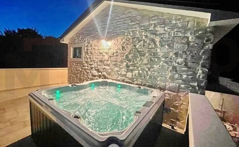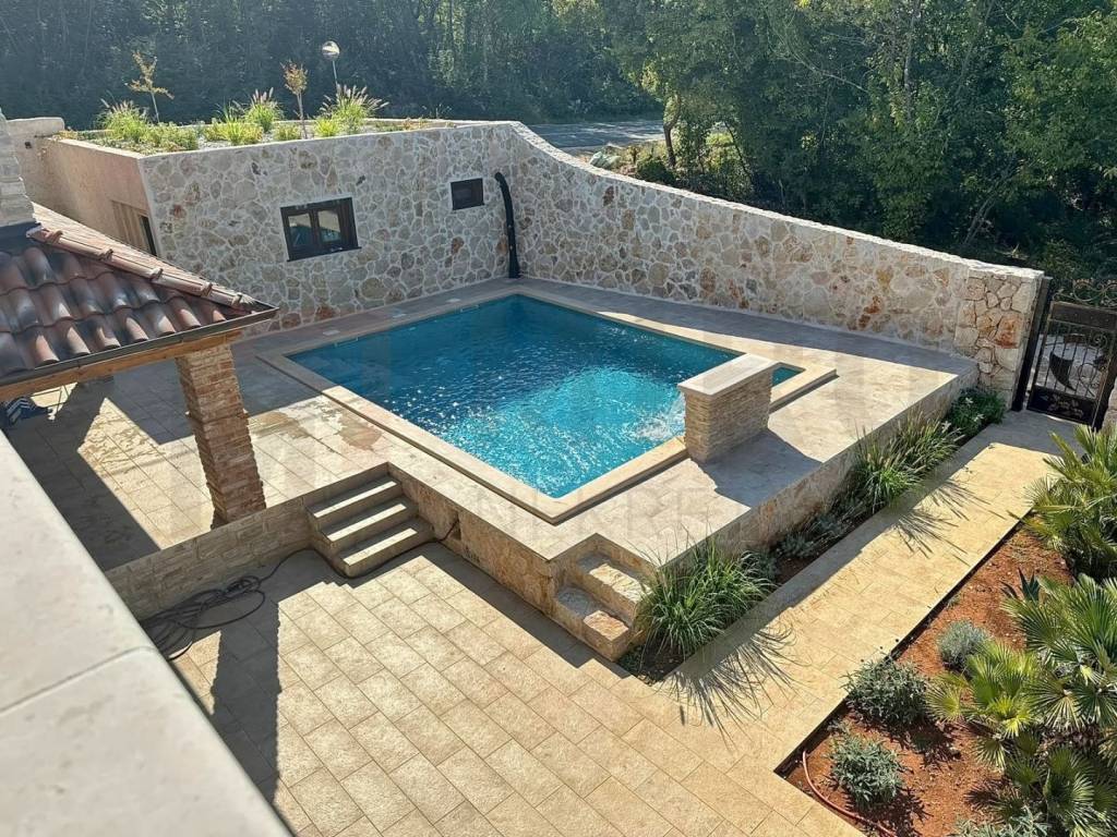 Island of Krk, Dobrinj area, new stone villa with swimming pool in a quiet location. This beautiful stone villa has a total area of 220 m2, of which about 150 are residential in the main building. On the ground floor of the building there is a bathroom, a bedroom, a bathroom, and a kitchen with a dining room and a living room from which there is access to a covered terrace and a beautifully landscaped garden with a swimming pool. There are three parking spaces and an auxiliary stone building of approx. 30 m2 decorated as a tavern. It also has an engine room from the pool. On the first floor there are two bedrooms and two bathrooms, as well as an uncovered terrace. The house is characterized by an excellent layout of the rooms, high-quality custom-made oak furniture, high-quality ceramics, PVC carpentry, air conditioning, underfloor heating with a heat pump and a heated pool. The house is sold furnished, with furniture included in the price. There is a parking lot with 3 parking spaces in the garden. The owner of this real estate is a natural person, and when transferring its ownership to the buyer, real estate sales tax in the amount of 3% is calculated. The owner of the house guarantees proper ownership and technical documentation. Visit us and find the square footage of your home!