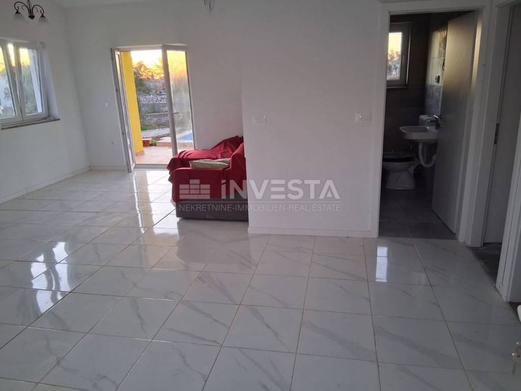 Villa a piano terra di alta qualità di 79 m² in un ambiente tranquillo e piacevole. La casa è composta da soggiorno open space, cucina, sala da pranzo, due camere da letto, un bagno, terrazza coperta e più posti auto nel cortile.