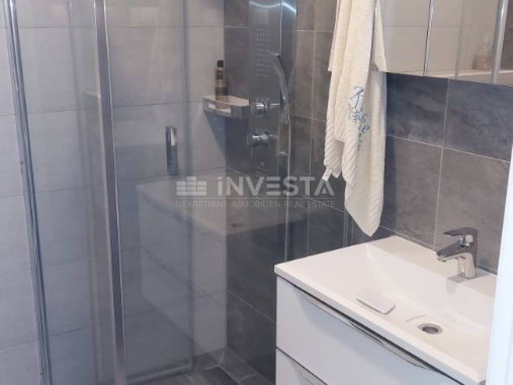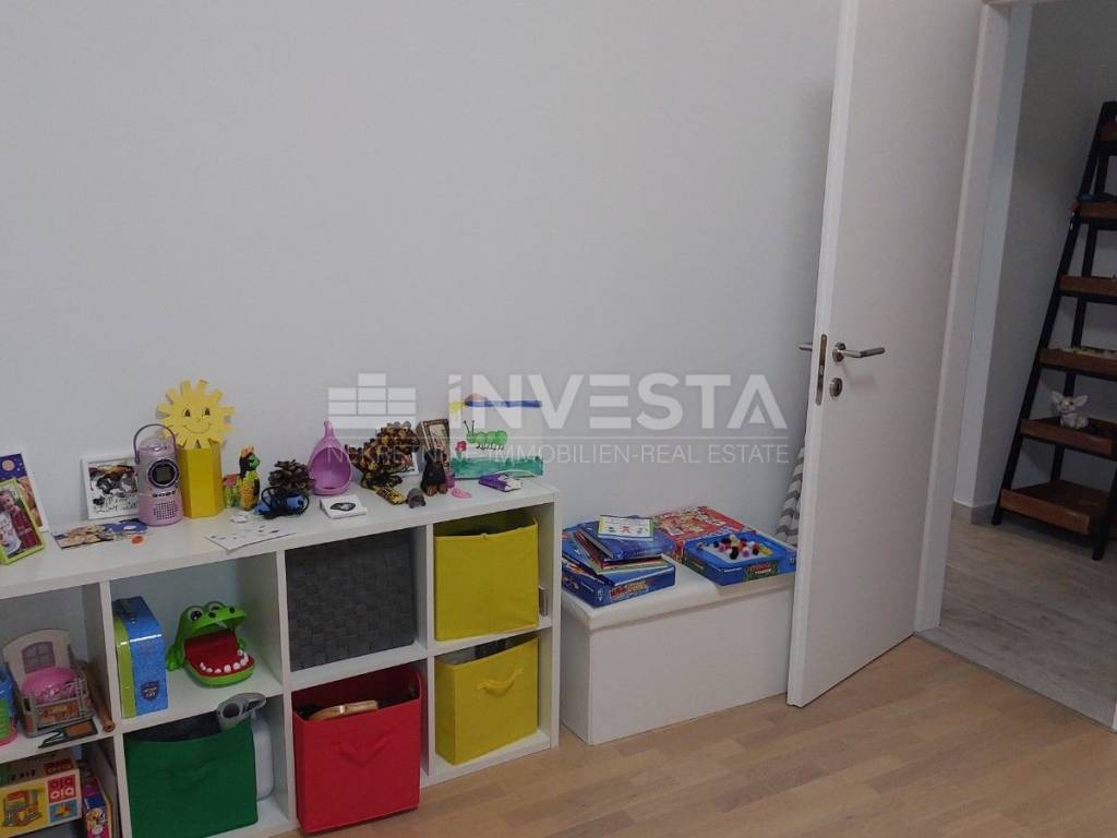 Nel pieno centro di Umago, in una zona molto richiesta e tranquilla, a soli 150 m dal mare e dalla spiaggia, è in vendita un appartamento al secondo piano di un edificio residenziale, della superficie totale di 79,12 m², con un ulteriore ripostiglio di 2,15 m² nel seminterrato.