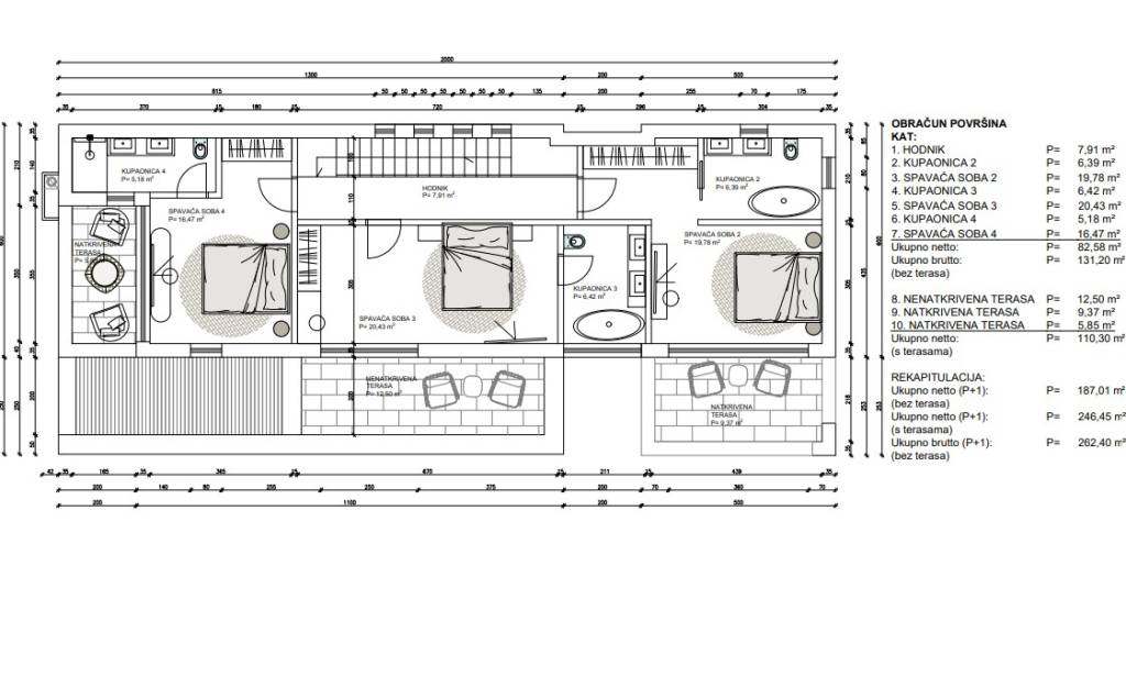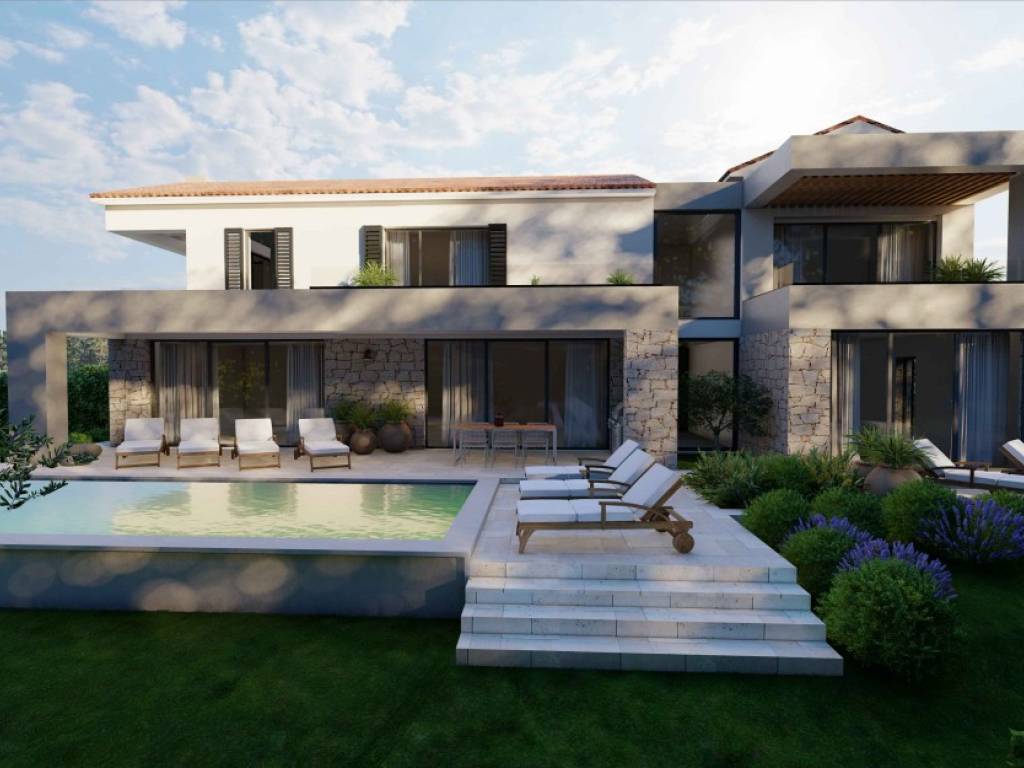 Poreč - not far from Poreč, 10 km from the center and the sea, the construction of a unique luxury villa has begun in a highly sought-after location with an open view of nature and the sea. The villa will be on two floors. The ground floor will consist of a hallway, toilet, laundry room, boiler room, kitchen, dining room, living room, one bedroom with its own bathroom. On the first floor, there will be three more bedrooms, each with its own bathroom and private terrace.
