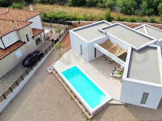 The island of Krk, Krk, wider area, sale of a new, modern single-storey house with an area of 135 m2 and a view of the sea, on a plot of 700 m2! The property consists of a living room with a kitchen and dining room, a hallway, three bedrooms with their own bathrooms, a toilet, a storage room, two covered terraces of 31.56 m2 and 21.88 m2 and a sunbathing area with a 30 m2 pool. Top quality construction and equipment, air conditioning, modern design, underfloor heating, indoor fireplace, yard decorated with Mediterranean plants, two parking spaces in the yard. The property is owned by a natural person. The seller guarantees proper documents and quick transfer of ownership. Visit us and find the square footage of your home!