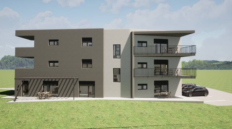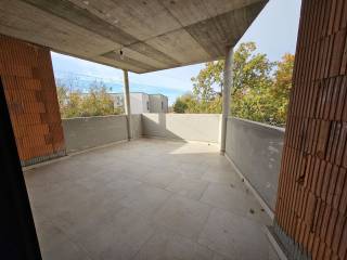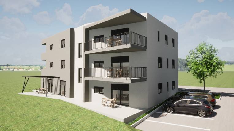 Poreč - Penthouse on the 2nd floor in a new building. The apartment has a total area of 148 m2 and consists of a hallway, a toilet, four bedrooms, two bathrooms, a pantry, a kitchen, a dining room with a living room with access to a spacious balcony. The apartment has available two parking spaces equipped with electricity connection for charging electric vehicles. The apartments are heated and cooled with high-efficiency air conditioners (Mitsubishi), underfloor heating will be installed in the bathrooms. Photovoltaic panels are installed on the roof and the apartment has its own solar power plant.