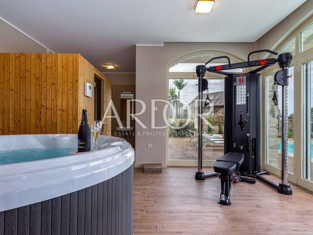 Il riscaldamento a pavimento è distribuito in tutta la casa, pompe di calore, ambienti climatizzati Daikin climatizzati, pannelli solari per il riscaldamento dell'acqua, centro benessere con sauna e vasca idromassaggio, palestra, sala giochi per bambini, attrezzatura top e mobili su misura, materiali di prima classe utilizzati in costruzione e posizioni calme e tranquille con splendide viste sono solo alcuni dei vantaggi che soddisferanno anche i clienti più esigenti.