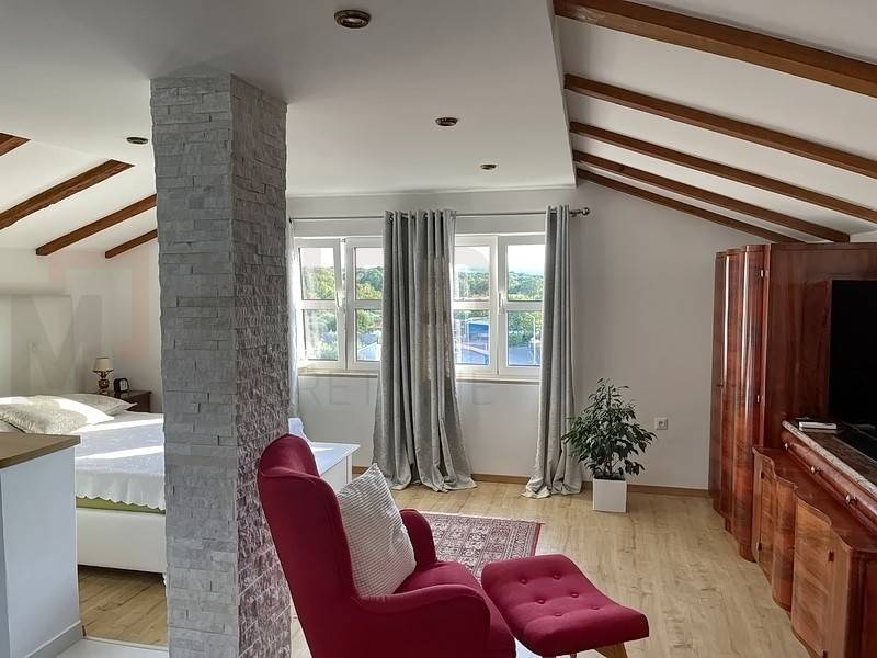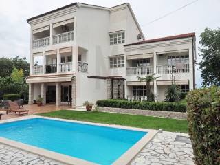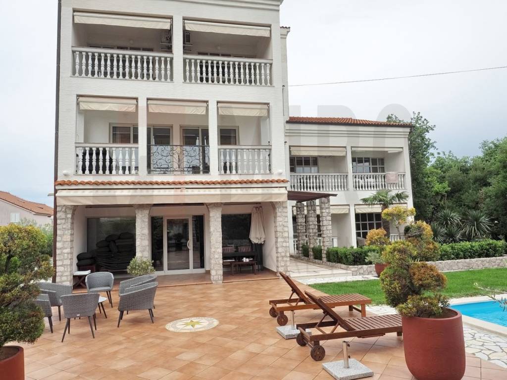 Island of Krk, Malinska, multi-storey apartment house with 9 residential units with a spacious garden and swimming pool that provides comfort. The villa covers an area of approx. 800 m2 and is surrounded by a spacious garden of 960 m2, where there is a sunbathing area with a swimming pool (28 m2), barbecue, parking and a park with indigenous plants. In the basement there is a garage, a storage room arranged as a workshop and a summer kitchen on one side, and a spacious living room with a kitchen and a toilet. There is also a tavern, which is arranged as a storage room with its own entrance, and a boiler room with pellet central heating. On the ground floor there are 3 one-room apartments (40 m2, 40 m2 and 50 m2), a business area of 90 m2, which has its own terrace and access to the garden. There are also 3 apartments on the first floor: two one-room apartments of 40 m2 and one large apartment of 111 m2 (2SS+DB). On the second floor, there is a 36 m2 apartment that is currently converted into a laundry room, and another apartment with two bedrooms. In the attic there is an apartment of 80 m2 with two bedrooms and a spacious living room with access to a terrace with a beautiful view of the sea. Great investment opportunity with an established rental business. The real estate is owned by a natural person and the buyer is obliged to pay real estate sales tax in the amount of 3%. The owner of the house guarantees proper ownership documentation. Visit us and find the square footage of your home!
