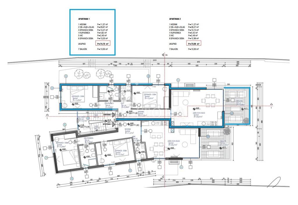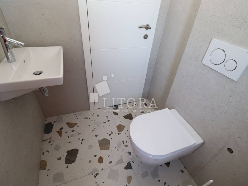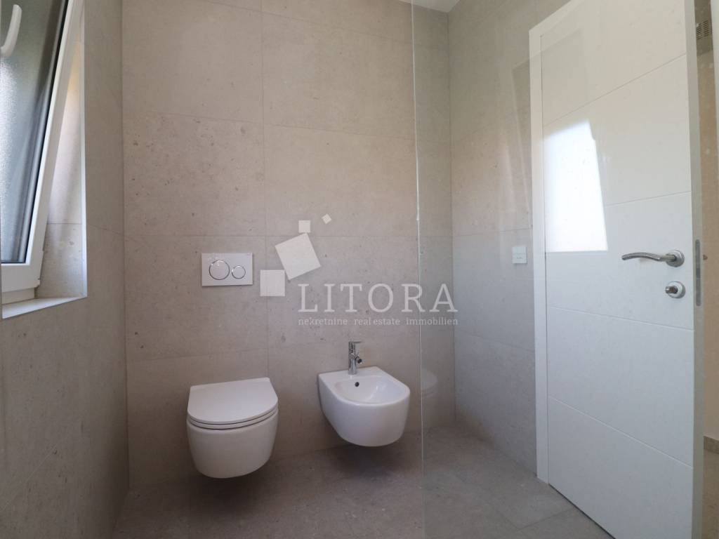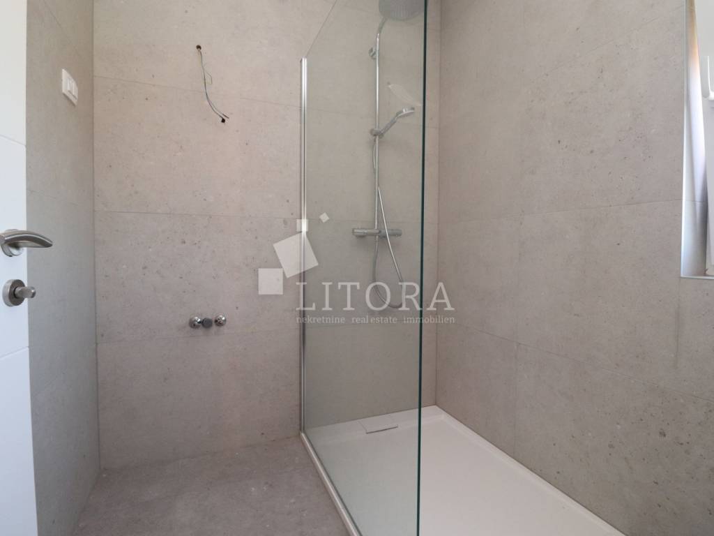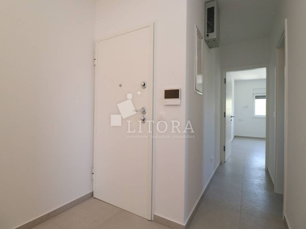 Betina – First row by the beach! Modern two-bedroom apartment on the 2nd floor of a new building in a prime location with open sea view. The apartment is facing east, offering a beautiful, unobstructed view of the sea. The total usable area is 84.86 m², and it consists of: entrance hallway, two bedrooms, bathroom and a separate guest toilet, fully equipped modern kitchen with dining area and living room, covered terrace of 13.50 m² with sea view, garage parking space (20 m²), storage room (5.34 m²). Additional amenities: The residents have access to a spacious shared courtyard of approx. 200 m², featuring a covered terrace, barbecue/outdoor kitchen, and an outdoor shower. High quality equipment includes: PVC windows with electric shutters and insect screens, Security and fire-resistant entrance door, Electric underfloor heating in the bathroom, hallway, kitchen, and living room, Air conditioning and TV connections in every room, Modern bathroom fixtures and sanitary ware. The apartment is fully finished and ready to move in, ideal as a holiday home, for year-round living, or for tourist rental.