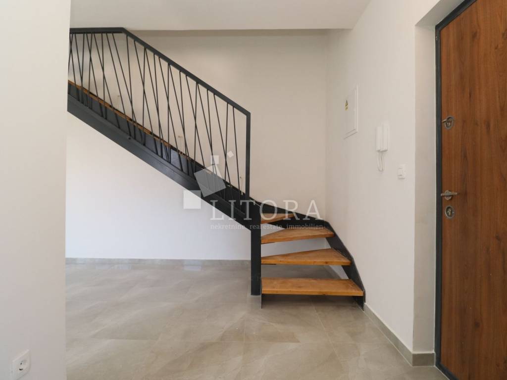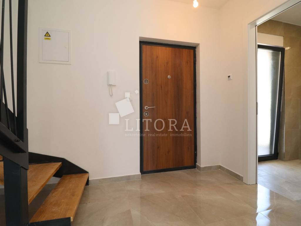 Comfortable duplex apartment on the 1st and 2nd floors of a residential building, located only 200 meters from the beach. The apartment faces northeast and has a total usable area of 140.46 m². It consists of a hallway, a toilet, a living room with a kitchen and dining area, and access to a terrace on the 1st floor. Internal stairs lead to the 2nd floor, where there are three bedrooms (one of which has an en-suite bathroom) and additional bathrooms. The apartment includes one garage space and exclusive use of the 109.35 m² roof terrace. High-quality finishes include ceramic tiles, sanitary ware, carpentry, underfloor heating in the bathrooms, air conditioning, and mosquito nets. The distance to the town center is 750 meters, and the sea/beach is just 200 meters away.