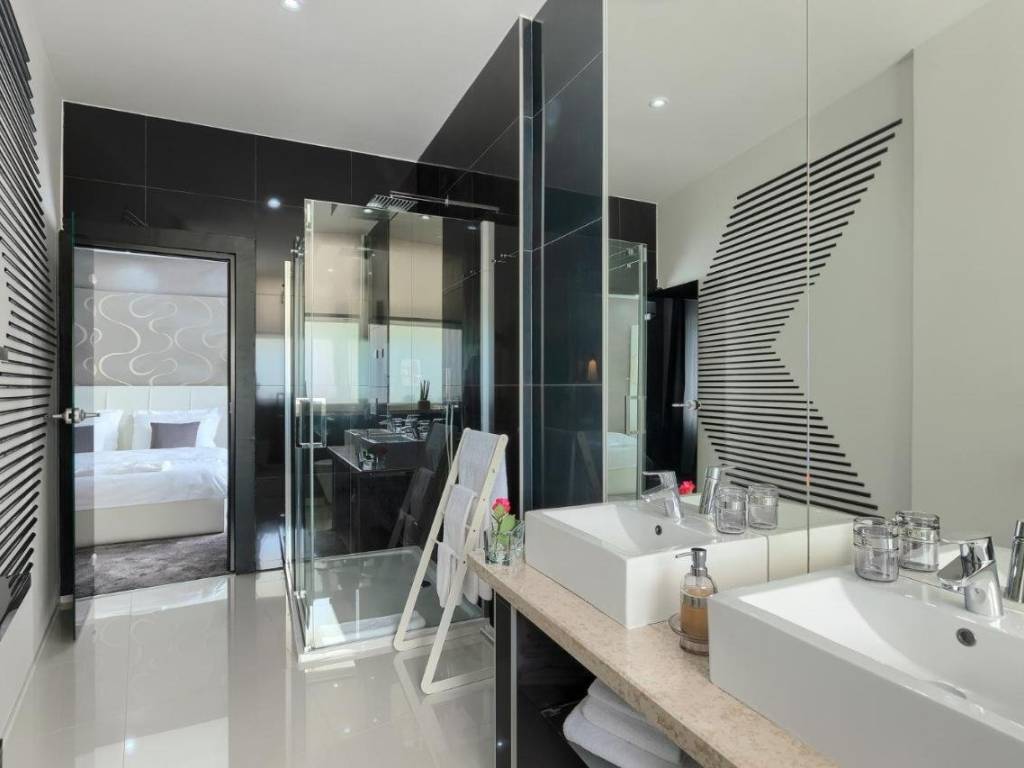 We go down to the relaxing part of the villa, and upon arriving in the wellness area, the real wow effect will be caused by beautiful details of semi-precious stones decorated with onyx, which will be responsible for safe relaxation, where you will literally find your zen zone for enjoyment.