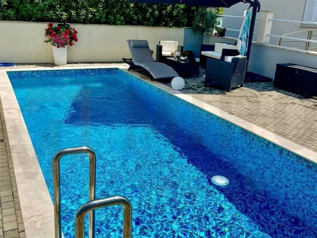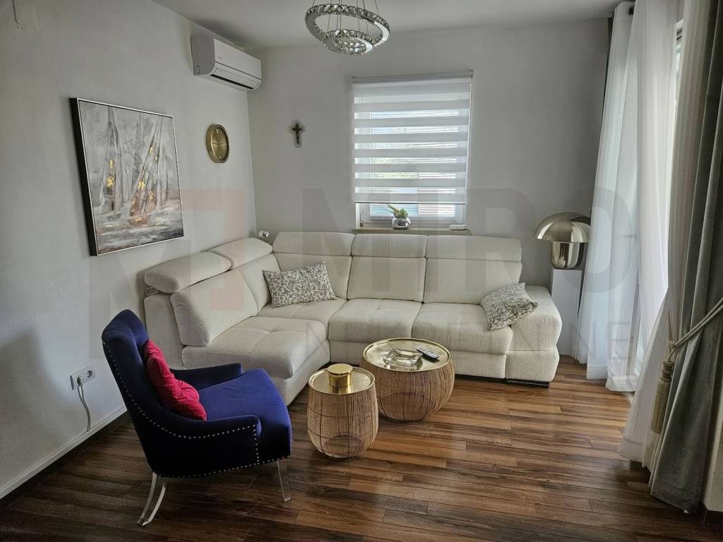 The island of Krk, Šilo offers a one-room apartment with a total area of 44 m2 located on the first floor of a residential building with a total of six units. It consists of an entrance area, a storage room, a bathroom, a bedroom, a kitchen with a dining room and a living room with access to a covered terrace. The apartment was renovated in 2023 and is well equipped and furnished, air-conditioned, has PVC joinery and is ready to move into. It has one parking space in the garden of the building, a space in the common storage room and a garden of 15 m2 that has access to a common garden with a swimming pool that is co-owned by four tenants. It is located in an excellent location, only 400 m from the beaches and the center. The apartment is owned by a natural person and the buyer is obliged to pay real estate sales tax in the amount of 3%. The seller of the property guarantees proper ownership documentation. Visit us and find the square footage of your home!