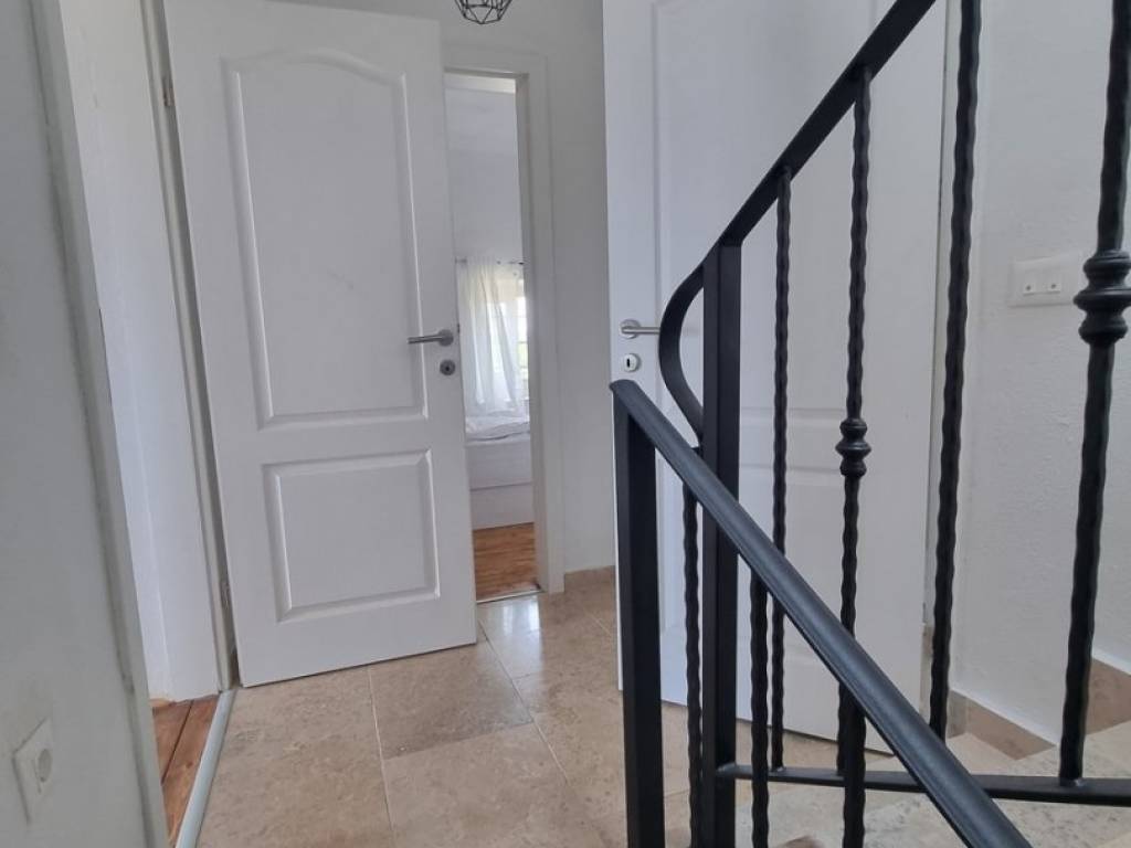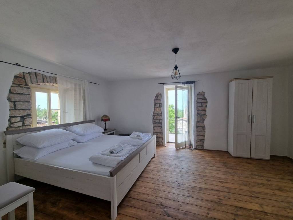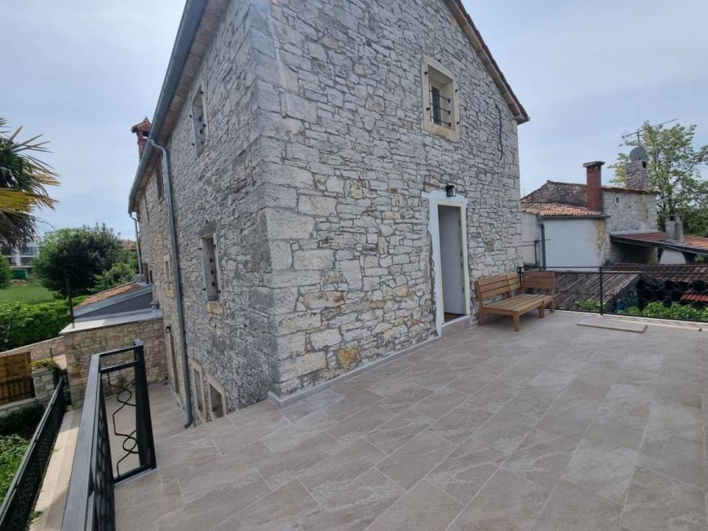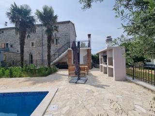 This charming stone beauty is located in the center of a small Istrian town within easy reach of all amenities, only 3 km from well-maintained beaches. The house is not detached, it is connected to another house on only one side. The house was built before 1968 and was renovated in 2022, and equipped with furniture and equipment. There is a swimming pool in the garden, as well as an outdoor barbecue and parking spaces. It consists of three floors: ground floor, first floor and high attic. The ground floor has a dining room, kitchen, large living room with stone and a bathroom. Internal stairs lead to the first floor where there are two bedrooms (one larger and one smaller), and a bathroom. The larger room leads to a spacious balcony with an open view of the sea and nature, and is connected to the garden by external stairs. In the high attic there are two more bedrooms (one larger and one smaller, without a terrace), and a bathroom. Heating/cooling is regulated by air conditioning, while the living room has a fireplace for a winter atmosphere. The house is being sold with furniture and equipment!