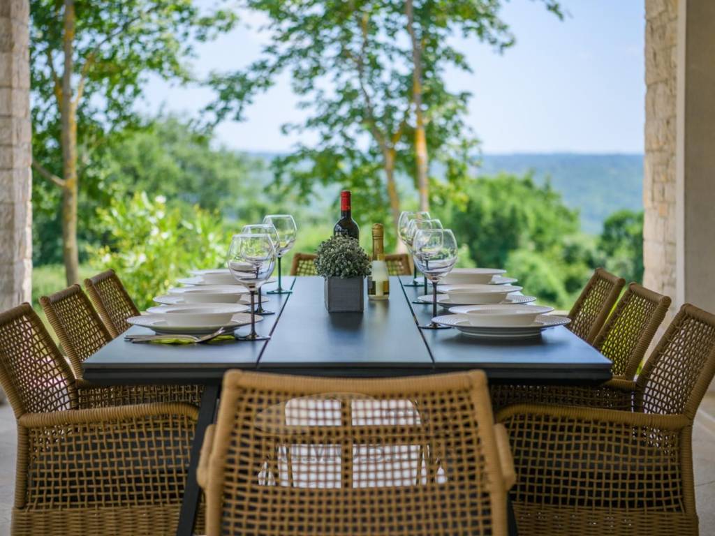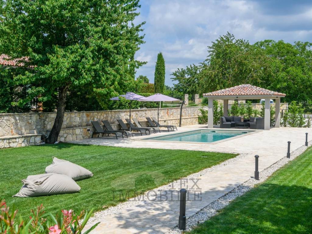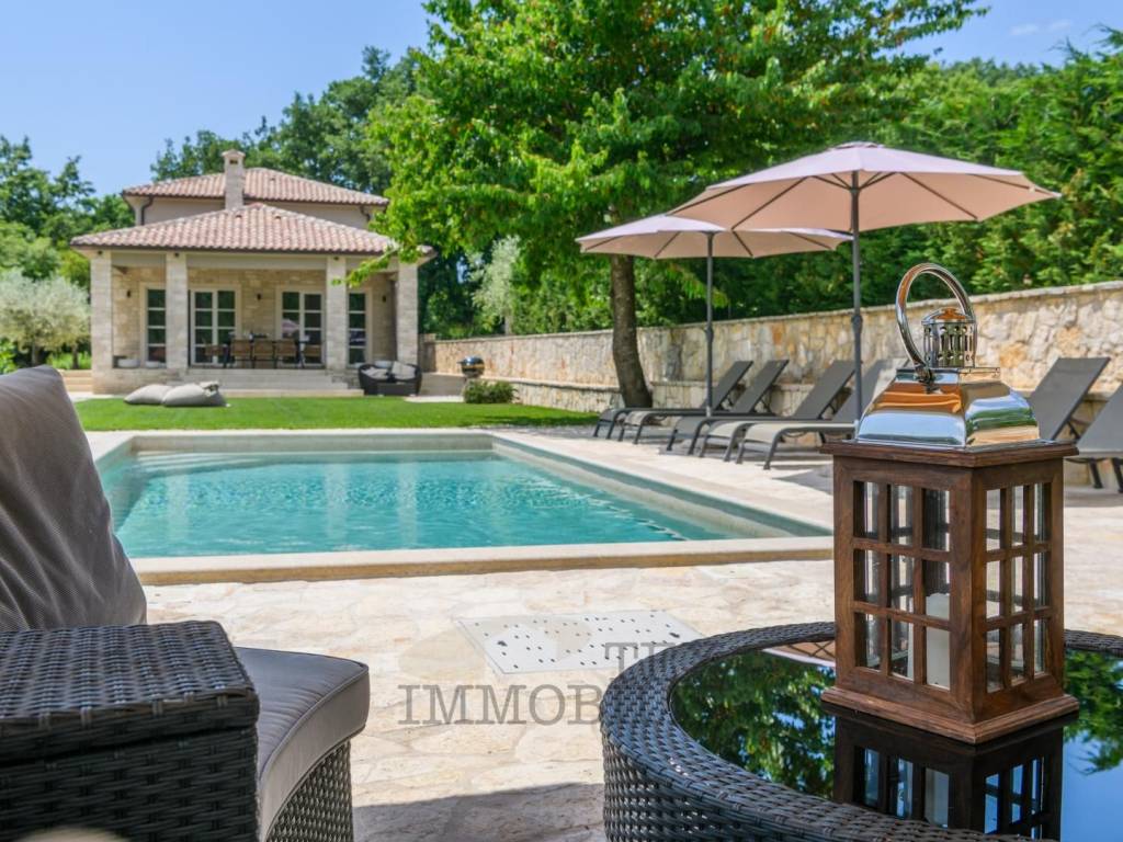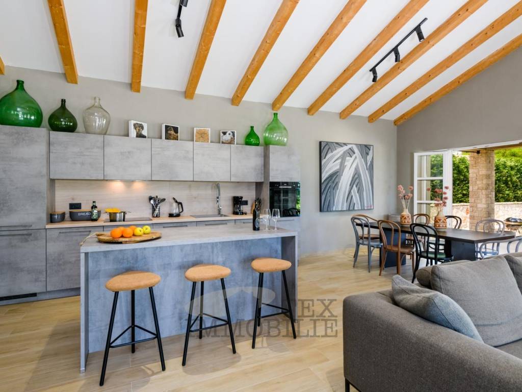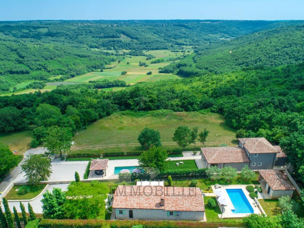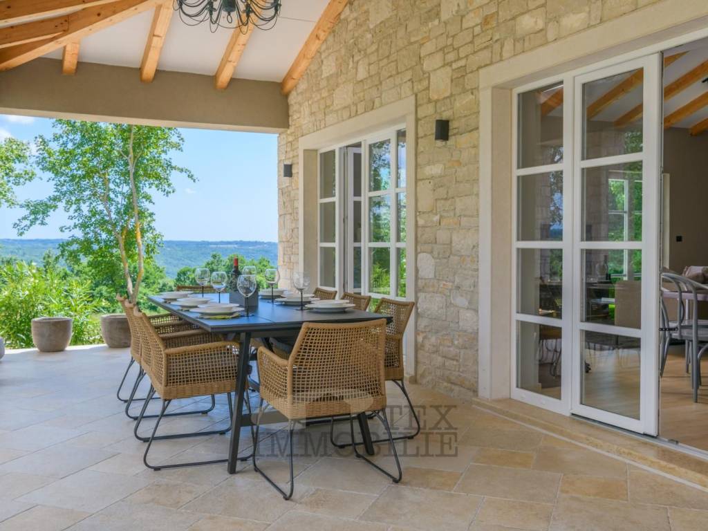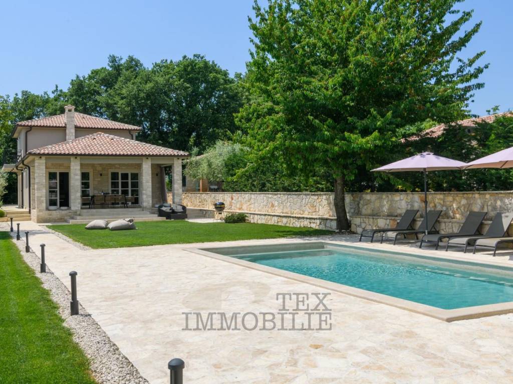 Situata nel cuore della idilliaca Istria centrale, questa affascinante e unica villa è stata costruita nel 2020 e copre un'impressionante superficie di 160 m², distribuita su due livelli.