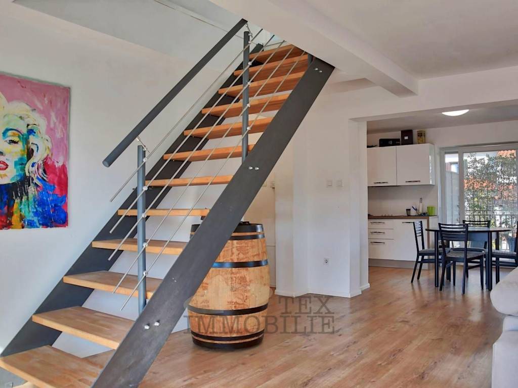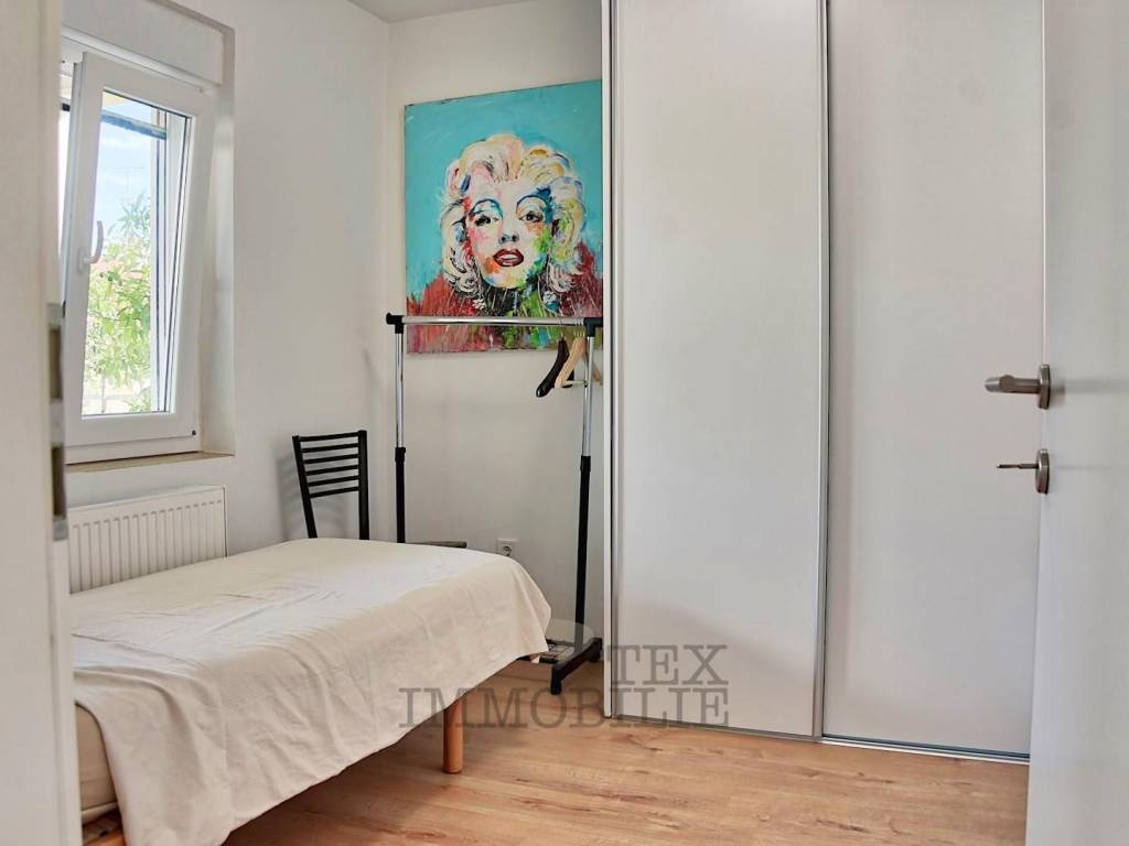 In vendita è un ampio appartamento di 125 m² di superficie lorda, situato in una palazzina più piccola a soli 3500 metri dal centro storico di Poreč e a 2500 metri dalle spiagge più vicine. Questo appartamento dal design moderno si sviluppa su due livelli collegati da una scala interna.