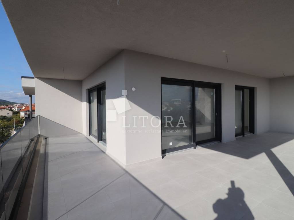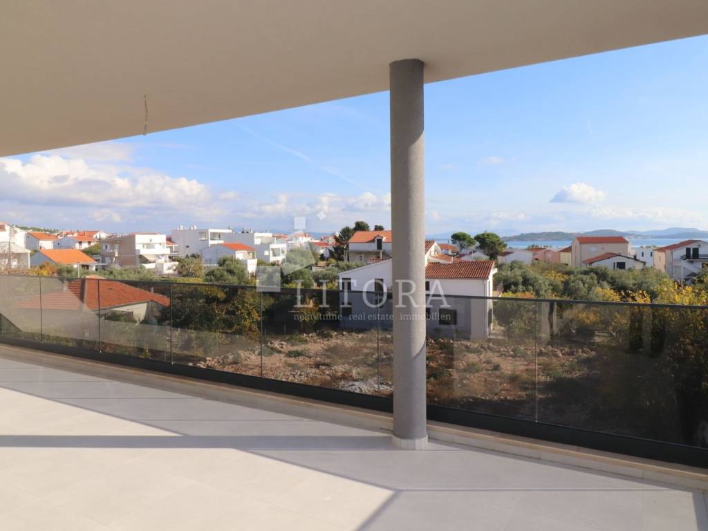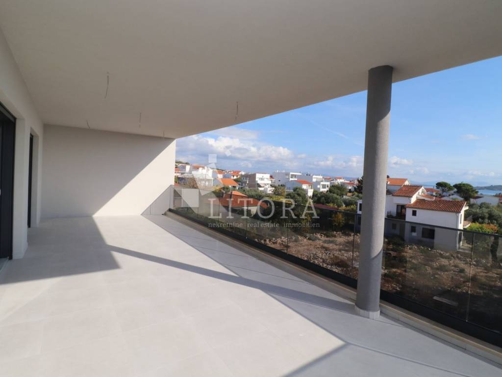 In Tribunj, just a short distance from the beach and the town center, this modernly designed apartment is located on the 2nd floor of a residential building. The apartment offers 132m² of usage space, a covered terrace of 44 m².