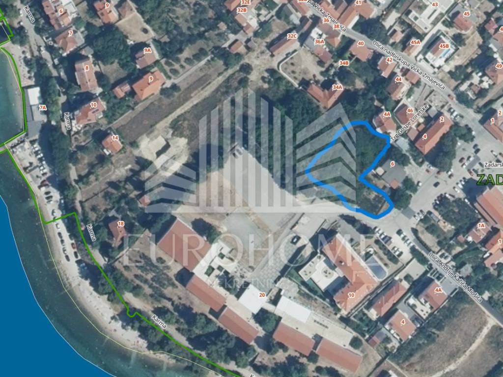 ZADAR-ARBANASI Prodaje se vrhunsko građevinsko zemljište od 2033m2, udaljeno od mora 120 metara u neposrednoj blizini škole i trga gospe Loretske.