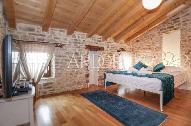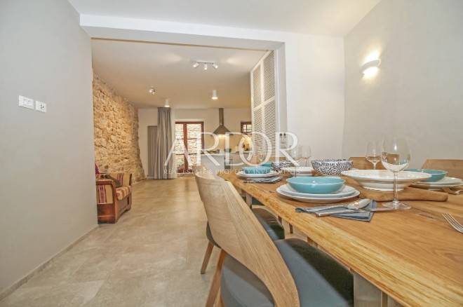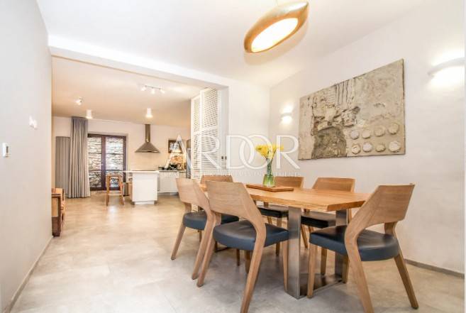 Valle-Istria, una casa in affitto ben attrezzata offre molto spazio su 4 piani per idealmente 6 persone (3 camere da letto), ma può ospitare anche fino a 8 persone. È stato ampiamente restaurato nel 2017 e dotato di una combinazione di design originale e moderno e lussuoso. Al piano terra troverete una cucina ben attrezzata ed elegante con una spaziosa sala da pranzo, nonché un bagno con lavatrice e asciugatrice. Al 1° e 2° piano si trovano un soggiorno e una camera da letto con bagno privato. Al piano superiore c'è un'altra camera da letto con il proprio bagno e un soggiorno, che offre anche una dispensa per la cucina e un posto letto per altre due persone.