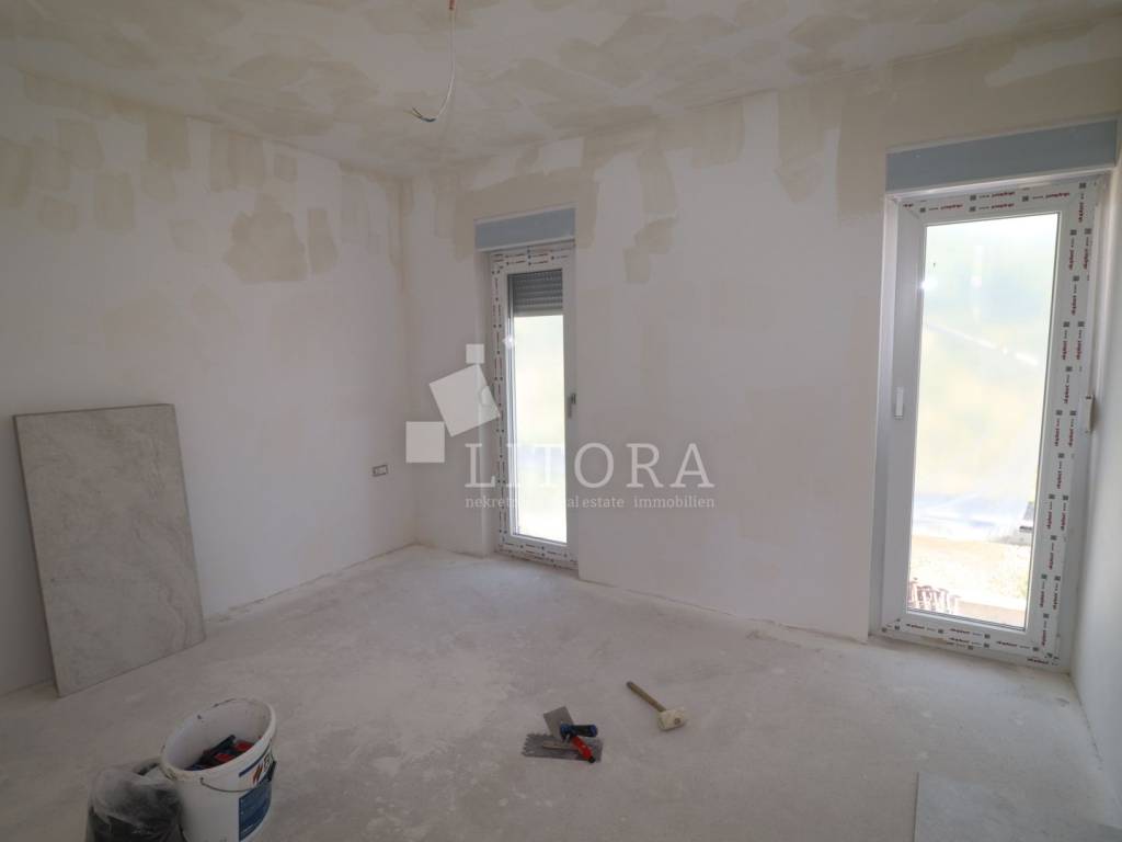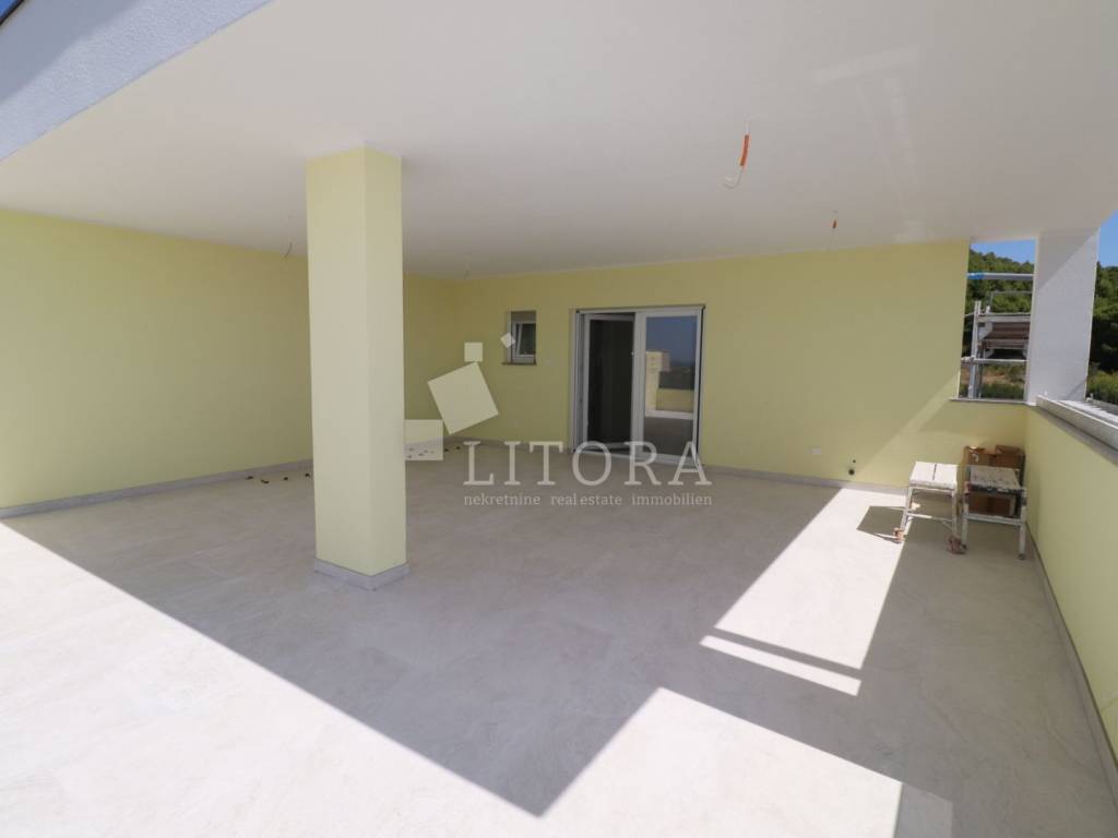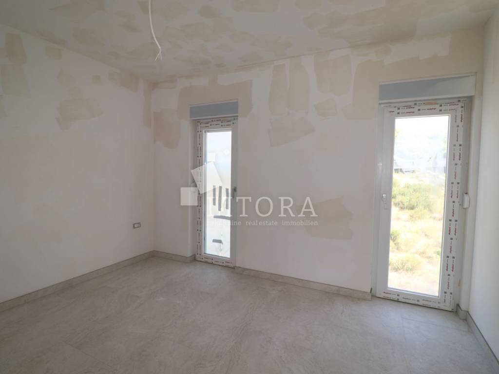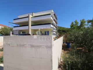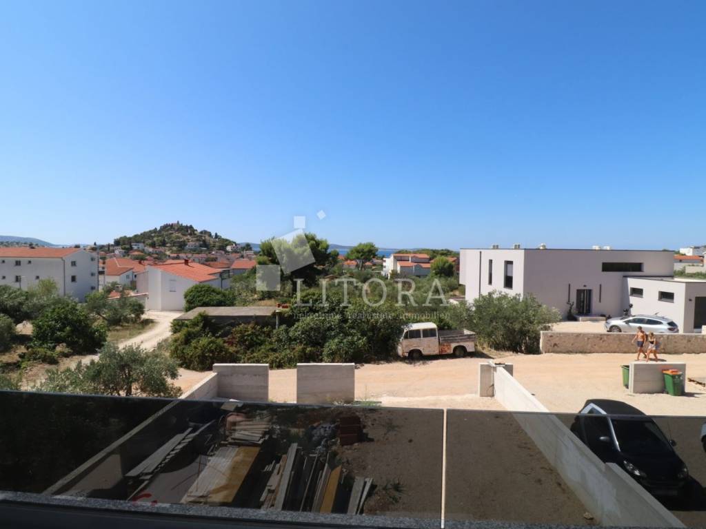 Tribunj – Modern Semi-Detached House with Panoramic Sea View. In a peaceful and attractive location in Tribunj lies an elegant semi-detached house, designed for complete comfort and enjoyment of living. The house is spread across three levels – ground floor, first and second floor – with a total usable area of 221,17 m², while the spacious garden of approximately 400 m² ensures privacy and plenty of room for relaxation. The outdoor area is complemented by a large terrace, swimming pool, and three parking spaces. On the ground floor, there is an entrance hall, bathroom, one bedroom, and a spacious kitchen with dining area and living room that opens onto a beautiful terrace and a garden with a swimming pool. This area is designed as the central hub for family gatherings and leisure. The first floor features three bedrooms – one with its own en-suite bathroom – an additional bathroom, and a large covered terrace with a stunning sea view. Two of the bedrooms have direct access to the terrace, offering a special experience of waking up to the scent of the sea. The second floor adds an extra touch of luxury. It includes a kitchenette, a bedroom, a bathroom, and an impressive terrace of 53.65 m², of which 40.60 m² is covered. From here, you can enjoy an unforgettable panoramic view of the sea – the perfect setting for relaxation or evening gatherings. The house is built and equipped to high standards of quality and modern design. The garden is fenced and thoughtfully arranged for complete enjoyment – from lounging in the sun to socializing by the pool. Location: The property is set in a quiet area, yet ideally close to all amenities – only 800 m from Zamalin Beach and 850 m from the town center. Planned completion and move-in are scheduled for the end of 2025.