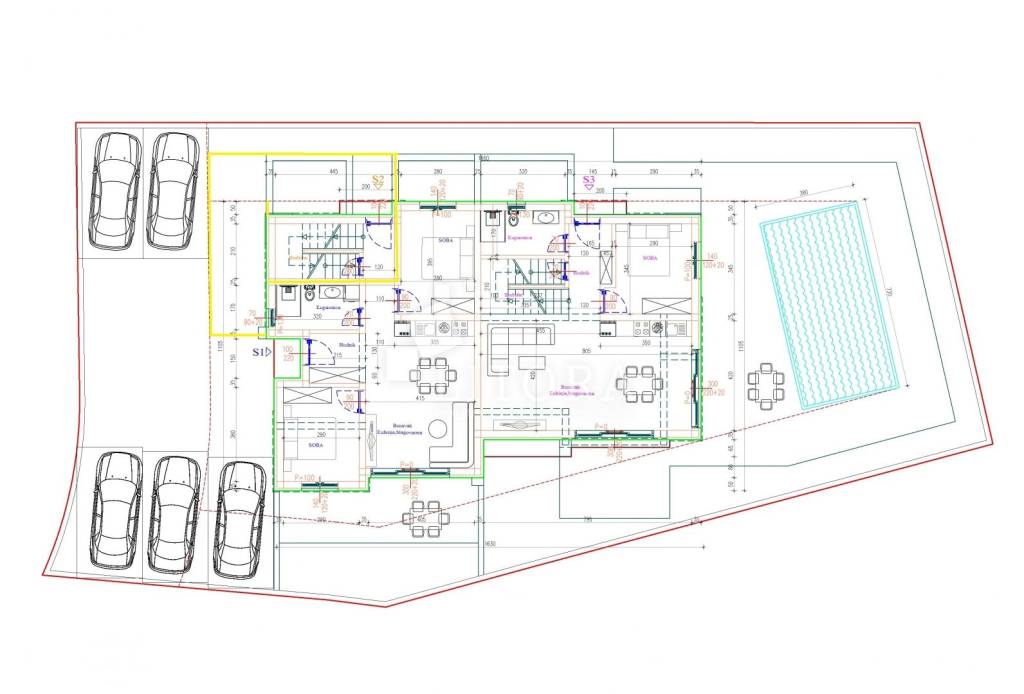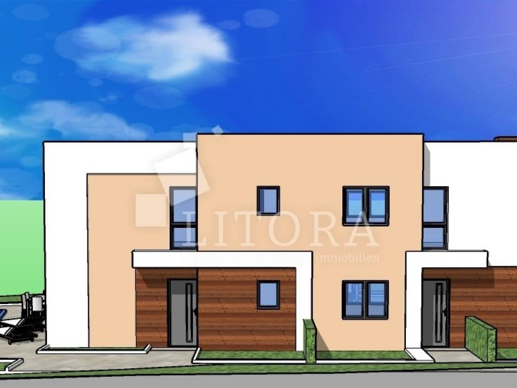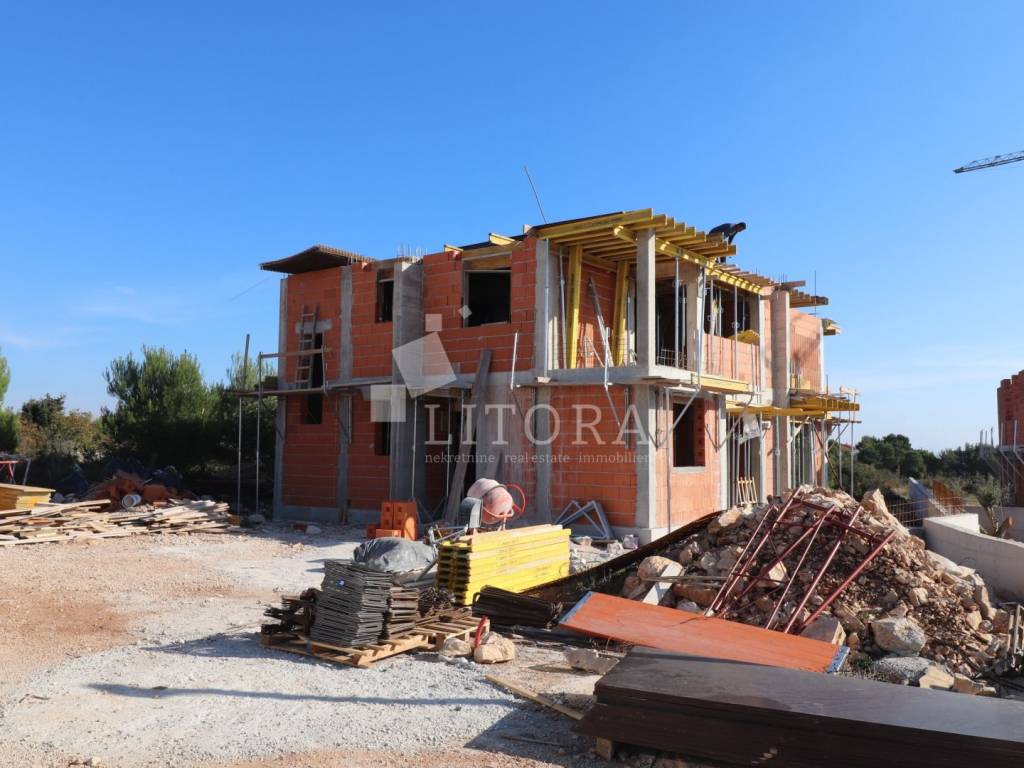 Vodice – Peaceful location, new build, Apartment S2 with 79.01 m² of usable space. Apartment S2 is located in a small residential building with a total of three units, in a quiet setting. It is a two-level apartment with a living area of 75 m². The ground floor comprises the entrance area, a storage room, and a staircase leading to the first floor. Upstairs there is a staircase, hallway, bathroom, two bedrooms, a kitchen with dining area, and a living room with access to the terrace. The apartment will be equipped with: underfloor heating in the kitchen with dining area, living room and bathroom, air-conditioning units in the bedrooms and living room, PVC joinery with shutters and insect screens, with electric shutter lifts, top-quality ceramic tiles and sanitary ware. The apartment also includes a courtyard on the ground floor (10.10 m²) and one outdoor parking space.