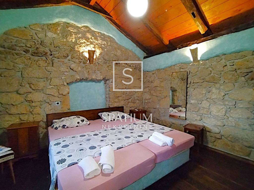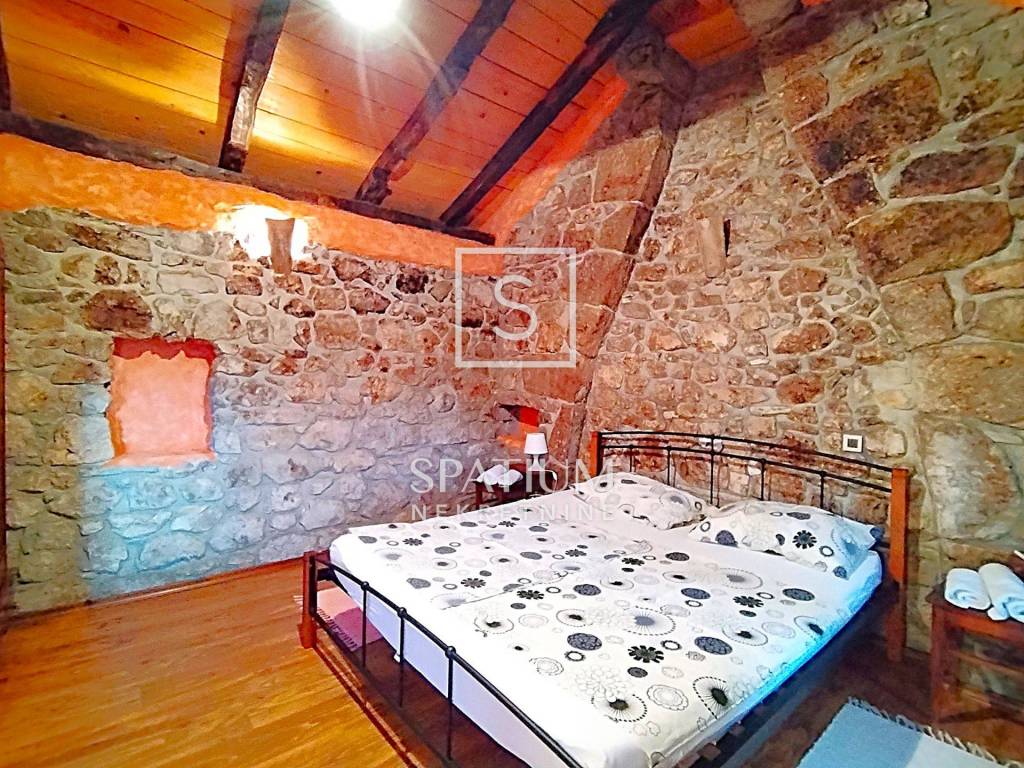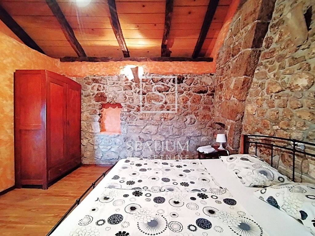 GRIŽANE, abbiamo ricevuto una casa autoctona in pietra nell'entroterra con una superficie di 255,60 m2. Si compone al piano terra di una taverna che contiene un ampio soggiorno con sala da pranzo, mentre sull'altro lato dell'edificio c'è un ingresso separato dove si trova una zona fitness con doccia. Al piano superiore, in una parte della casa, si trova una camera da letto separata con bagno, così come nell'altra parte, anch'essa con la stessa disposizione, con ingressi separati. Nell'ampio giardino si trova la piscina ed un gazebo in legno con posti a sedere. Grazie all'ampio terreno c'è spazio per diversi posti auto. Il posto è a pochi chilometri dalla città e dal mare. Per la sua posizione e le specificità della proprietà, questa è un'opportunità per il turismo e per una vita familiare tranquilla.