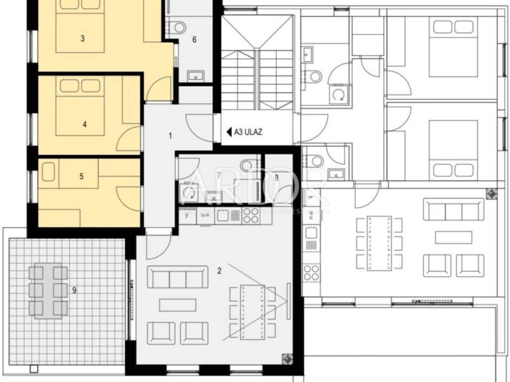 Isola di Pag, Novalja, mediamo la vendita di un appartamento in un nuovo edificio di lusso. La città di Novalja si trova in una dolce baia nella parte nordoccidentale dell'isola di Pag. La sua ideale posizione geografica lungo importanti rotte terrestri e marittime dall'Adriatico settentrionale a quello meridionale le consente di avere ottimi collegamenti stradali con la terraferma. Novalja è spesso un porto inevitabile per molti marinai.