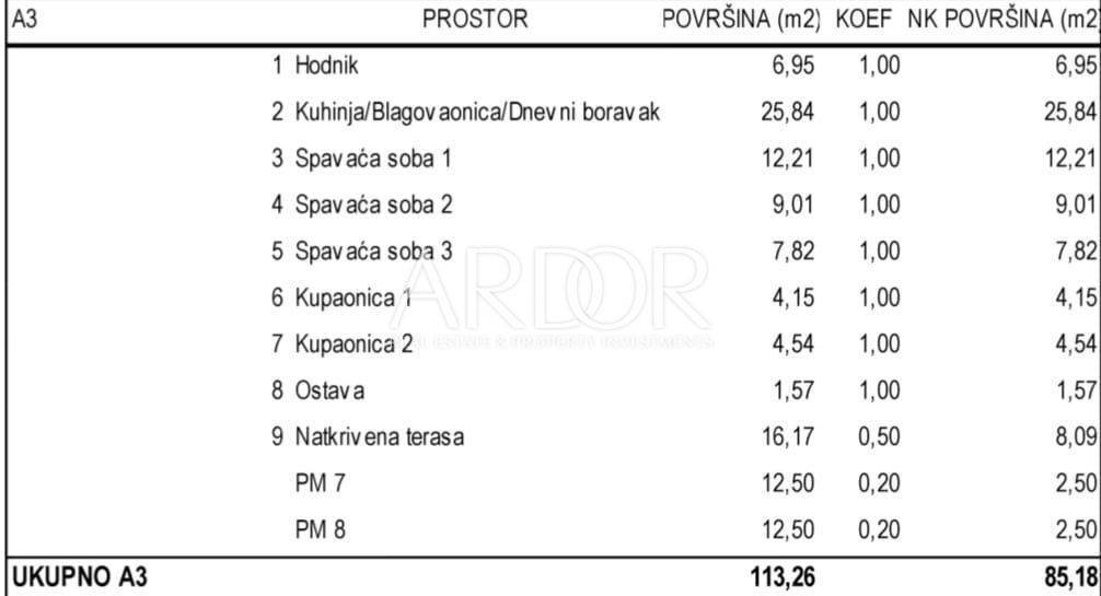 L'appartamento A3 si trova al 2° piano ed è composto da: ingresso, cucina/pranzo/soggiorno, camera 1, camera 2, camera 3, bagno 1, bagno 2, ripostiglio, terrazzo coperto, posto auto 1, posto auto 2