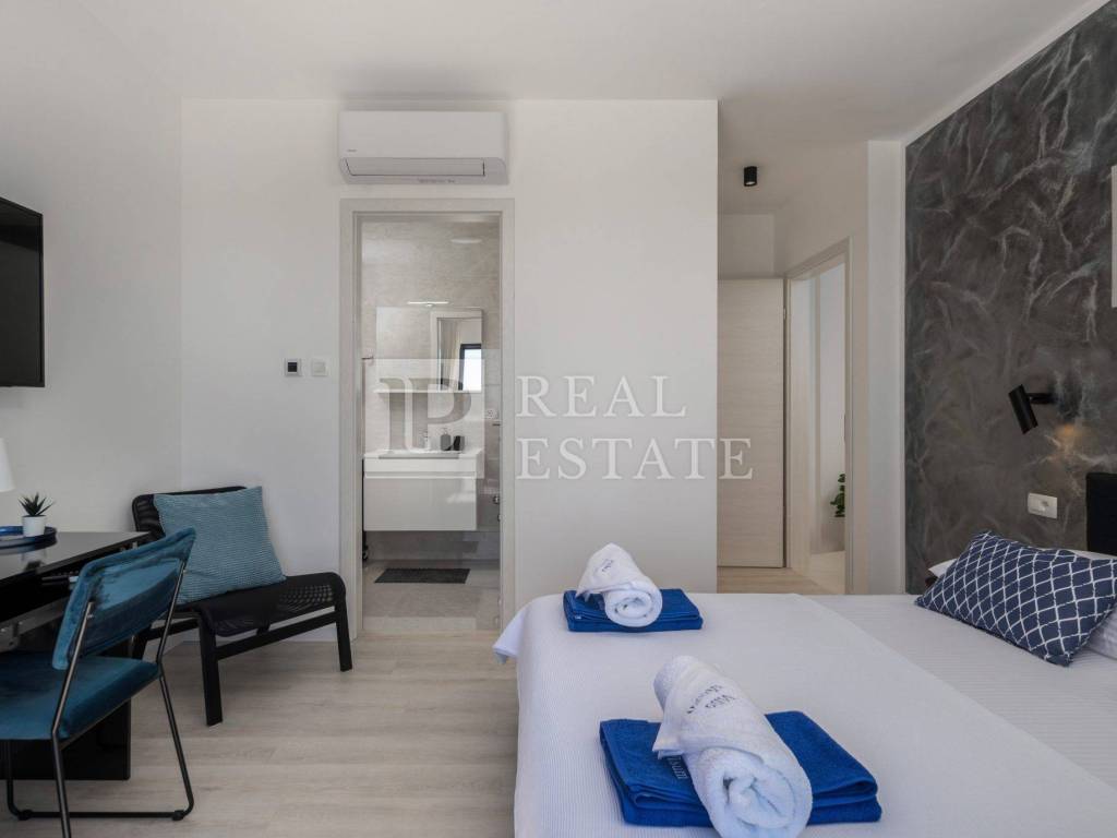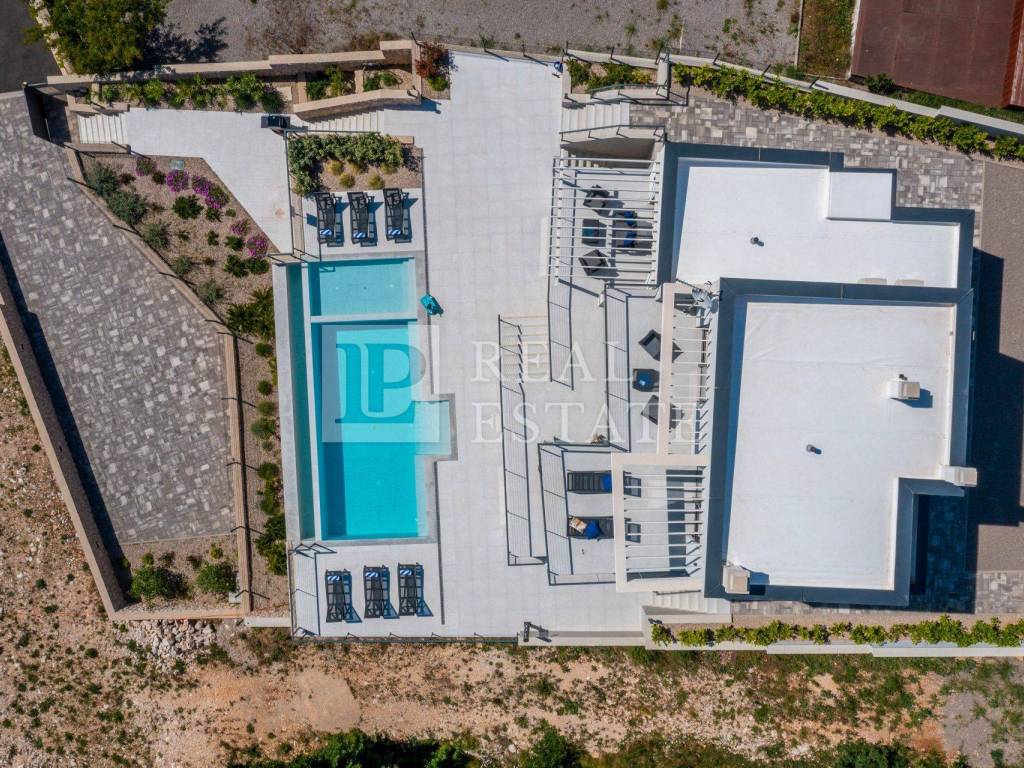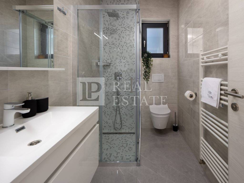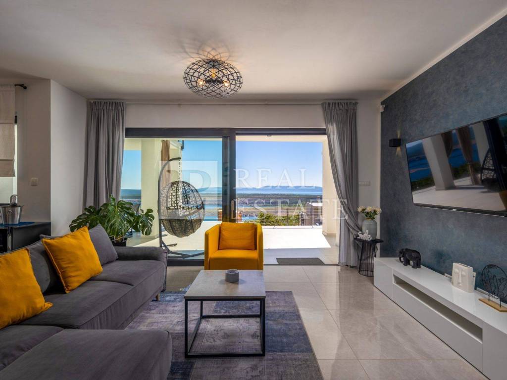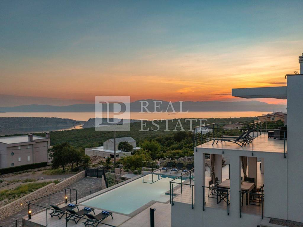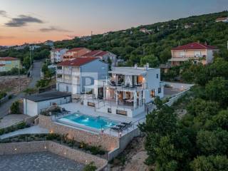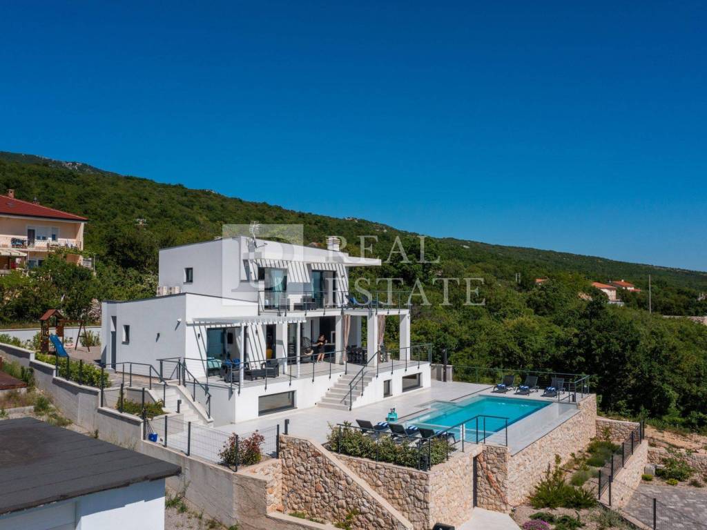 Una villa moderna con vista panoramica sul Quarnero è in vendita in una posizione eccezionale. L'interno, così come l'esterno della villa, è costruito con materiali di alta qualità, che ne garantiscono la qualità.