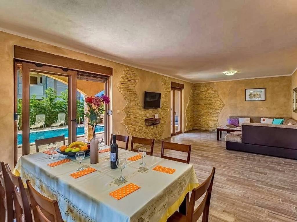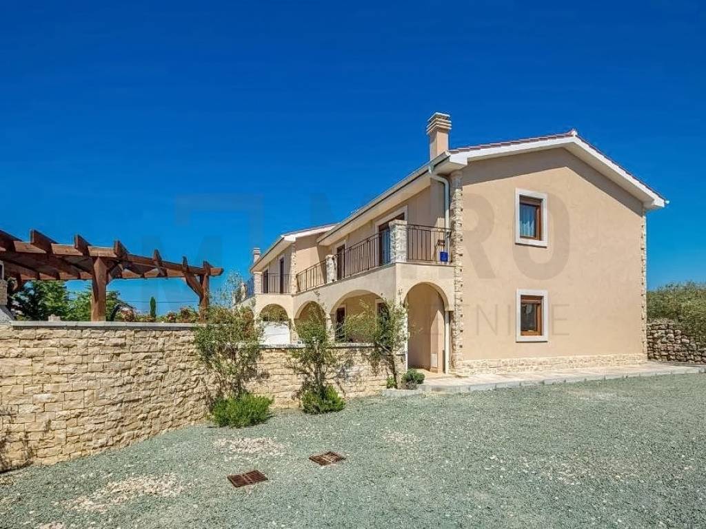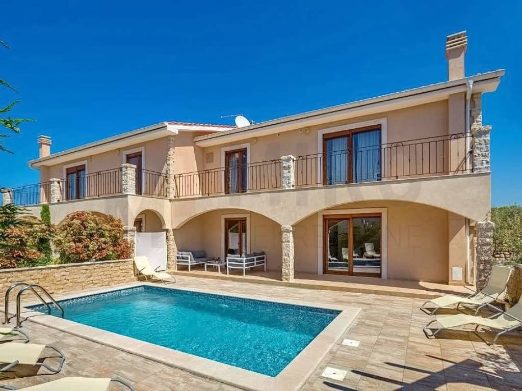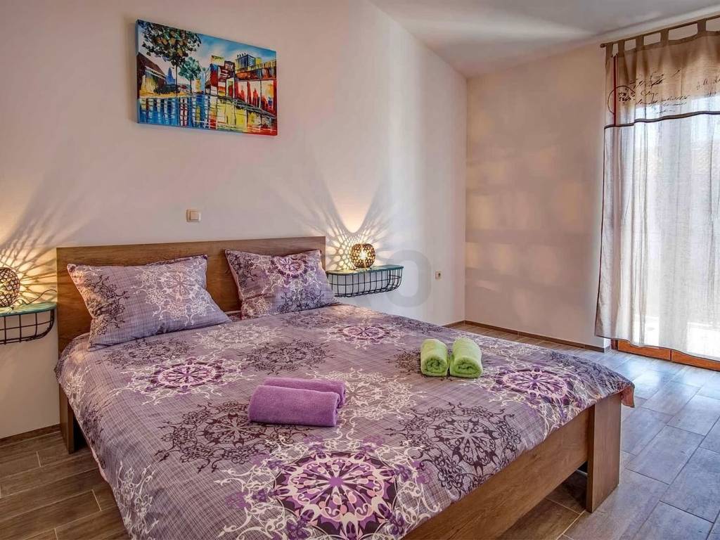 Island of Krk, Krk, surroundings, Mediterranean semi-detached house with two residential units and two swimming pools with a beautiful view of the sea. A semi-detached house in a quiet location has an area of 350 m2, the house has two floors, ground floor and first floor. On the ground floor of each residential unit there is an entrance hall, a bedroom, a bathroom, a staircase, a large living room with a dining room, a kitchen combined into one unit, from which there is an exit to an outdoor covered terrace with a sun deck and a swimming pool. The internal stairs of each residential unit lead to the first floor where there are three bedrooms, each with its own bathroom and access to a balcony with a wonderful view of the sea. The semi-detached house has a landscaped garden with a sunbathing area, two equipped swimming pools, two outdoor showers, two storage rooms, a special place in the landscaped garden is a gazebo with a barbecue. Each house has two parking spaces. homestead. The equipment of the semi-detached house includes high-quality ceramics, PVC carpentry, high-quality sanitary ware, TV, air conditioning in all rooms. This property is owned by a natural person. The property has an established rental business and permanent guests, an investment opportunity. The seller guarantees clean ownership documentation of the house.
