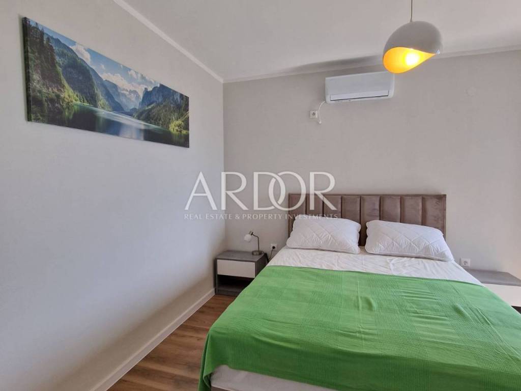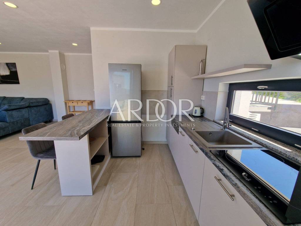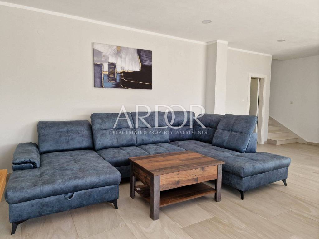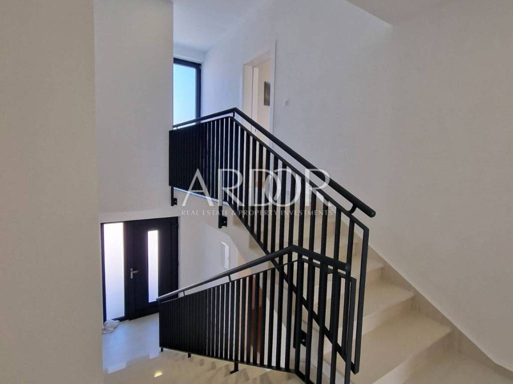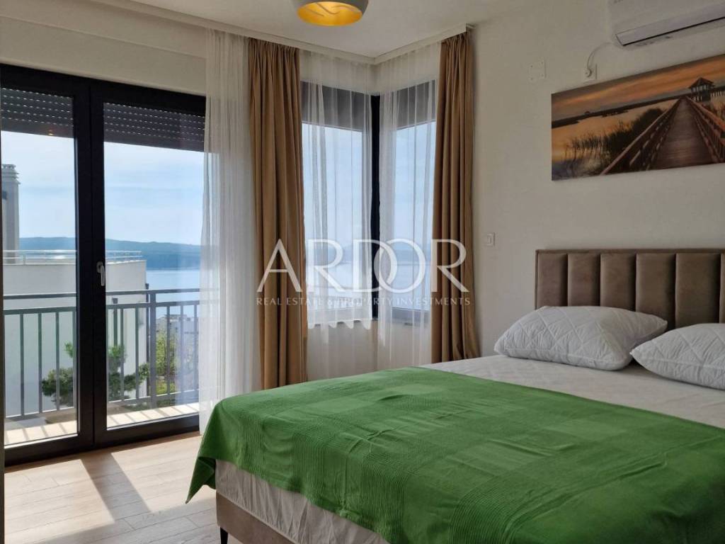 Crikvenica, casa di lusso in affitto con vista panoramica sul mare e piscina. La casa è di recente costruzione, moderna e dotata di mobili di qualità. Al piano terra si trovano i servizi igienici e una zona open space con cucina, sala da pranzo e soggiorno, dalla quale si accede attraverso una parete in vetro alla terrazza e alla zona solarium con piscina. Al piano rialzato si trova una camera con il proprio bagno, mentre al primo piano ci sono tre camere da letto con il proprio bagno e un terrazzo con vista mare. L'immobile dispone di un altro piano intermedio dove si trova una camera con bagno ed un piccolo balcone. L'acqua calda viene riscaldata tramite pannelli solari e l'edificio è riscaldato tramite riscaldamento a pavimento. L'edificio dispone di un garage con due posti auto.