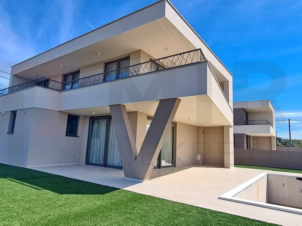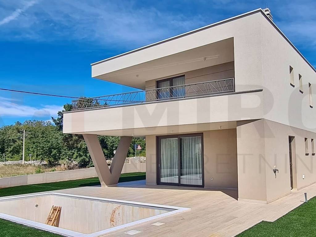 Island of Krk, surroundings of the town of Krk, villa with pool and sea view. The agency is selling a modern villa under construction with a total living area of 165 m2. It consists of a ground floor with an entrance hall, an open-concept room that combines the living room, kitchen and dining room, a toilet, two storage rooms, one bedroom with its own bathroom, a sauna and a covered terrace. On the first floor, which will offer a beautiful view of the sea, there will be three bedrooms, two bathrooms, a wardrobe and a covered and uncovered terrace. The property is sold fully furnished. The high quality of construction and equipment are just some of the characteristics of this beautiful villa under construction. The property is sold fully equipped and furnished. There will also be 2 parking spaces on the plot in question. The property is subject to VAT. The planned completion of construction is June 2024. The owner of the villa guarantees proper ownership and technical documentation and the possibility of a quick transfer of ownership. Visit us and find the square footage of your home!