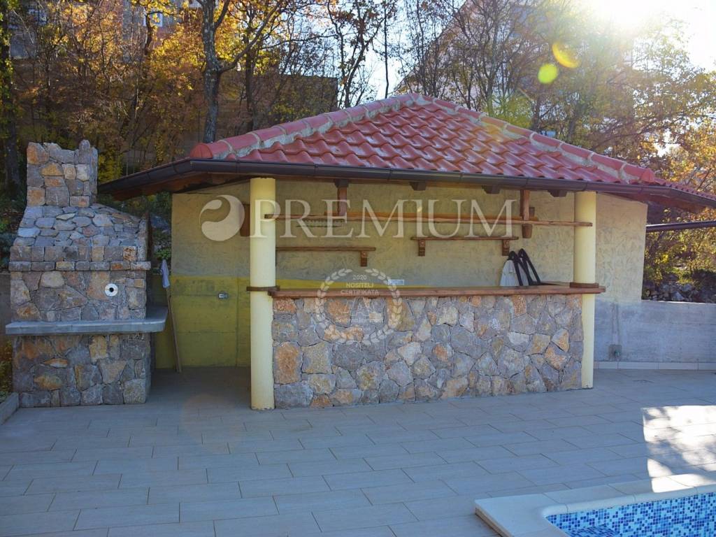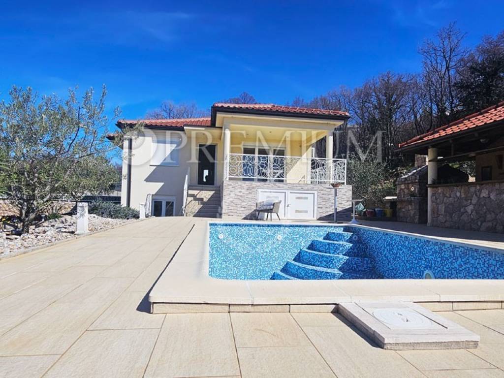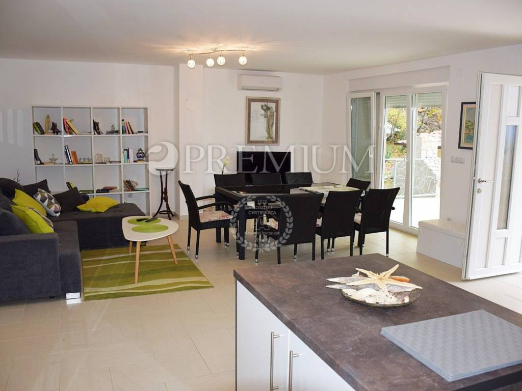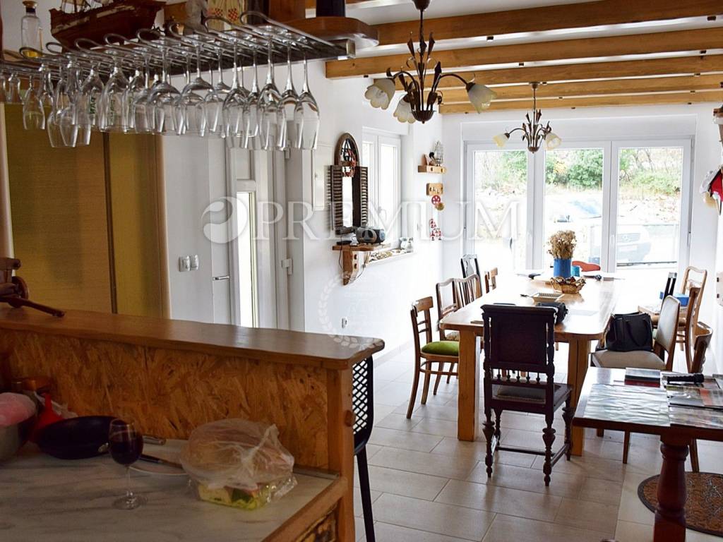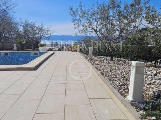 Omisalj, vendita di una casa indipendente composta da piano terra e primo piano e ha una superficie abitabile di 260 m2 con un ampio giardino. La casa è stata costruita nel 2016 su un terreno di 608 m2. Al piano terra c'è una sala, una cucina con zona pranzo e un soggiorno, un bagno, una camera da letto e due camere per una taverna e una cantina. Al piano terra c'è un ampio soggiorno, cucina con zona pranzo, due bagni, due camere da letto e una terrazza coperta pd 18m2. Sul grande giardino c'è un barbecue recintato, una cucina estiva coperta e una zona solarium con una piscina di 24 m2. Dal piano terra e dal pavimento si gode di una bellissima vista panoramica sul mare. Nel giardino c'è un garage e diversi posti auto. Completamente arredato.