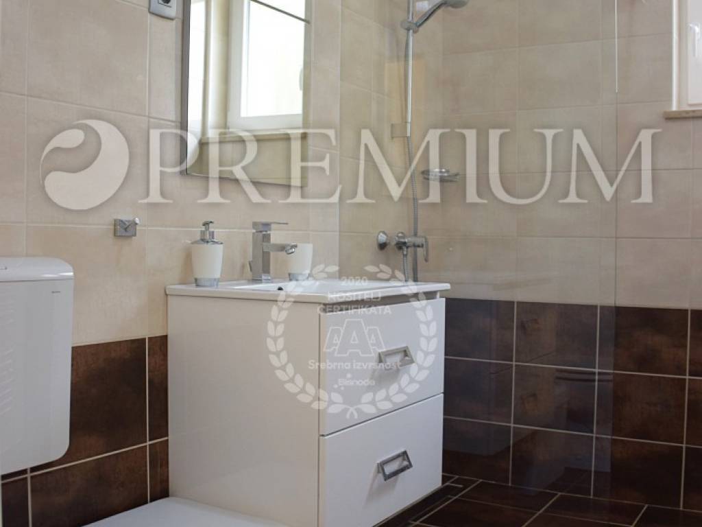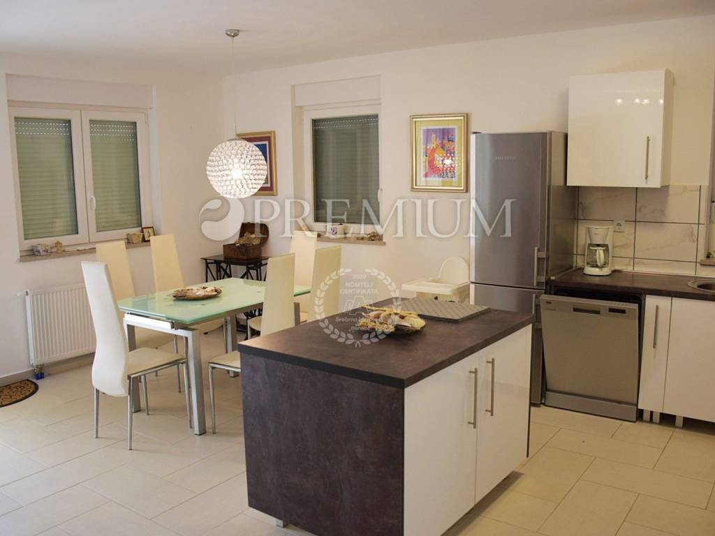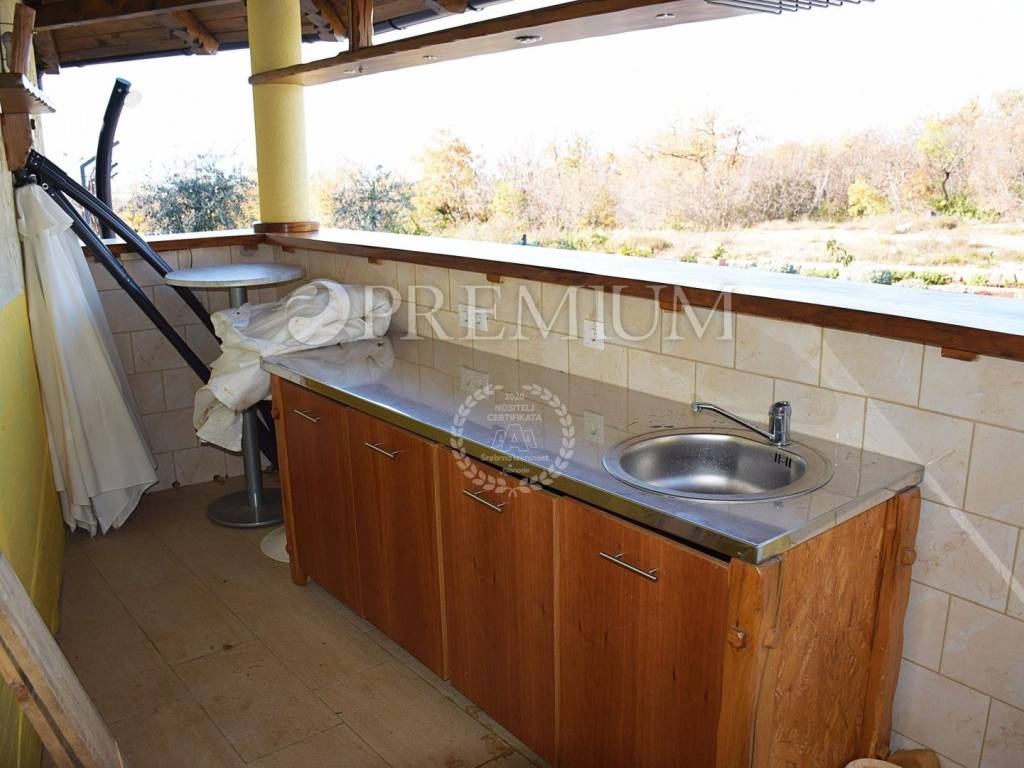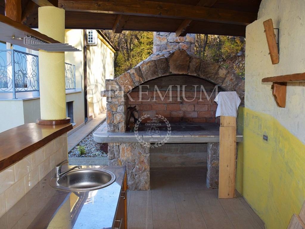 Omisalj, vendita di una casa indipendente composta da piano terra e primo piano e ha una superficie abitabile di 260 m2 con un ampio giardino. La casa è stata costruita nel 2016 su un terreno di 608 m2. Al piano terra c'è una sala, una cucina con zona pranzo e un soggiorno, un bagno, una camera da letto e due camere per una taverna e una cantina. Al piano terra c'è un ampio soggiorno, cucina con zona pranzo, due bagni, due camere da letto e una terrazza coperta pd 18m2. Sul grande giardino c'è un barbecue recintato, una cucina estiva coperta e una zona solarium con una piscina di 24 m2. Dal piano terra e dal pavimento si gode di una bellissima vista panoramica sul mare. Nel giardino c'è un garage e diversi posti auto. Completamente arredato.