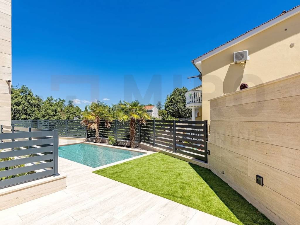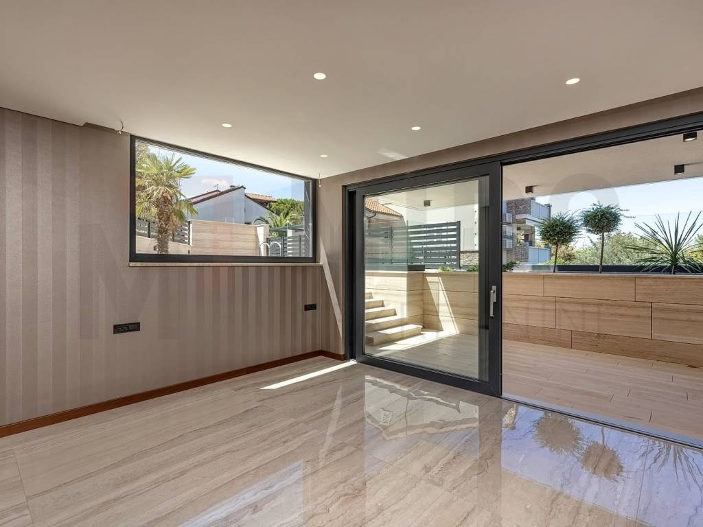 The island of Krk, Malinska, sale of an exclusive modern apartment with a garden, a swimming pool and a beautiful view of the sea in a great location. The apartment is located on the ground floor of a new residential building with a total of three residential units. The net area of 113.72 m2 consists of an entrance hall, a toilet, a bathroom, three bedrooms, of which the master bedroom has its own bathroom, a spacious, open space living room with a kitchen and a dining room with access to a covered terrace. The apartment also has a garden, swimming pool, 2 parking spaces. This modern and exclusive new building is characterized by an excellent layout of the rooms, aluminum carpentry, quality sanitary ware, parquet, porcelain ceramics, air conditioning in all rooms, underfloor heating, Roman stone on the ETICS facade, 15 mm thick. The real estate is the property of a natural person and the buyer is obliged to pay real estate sales tax in the amount of 3%. Visit us and find the square footage of your home!