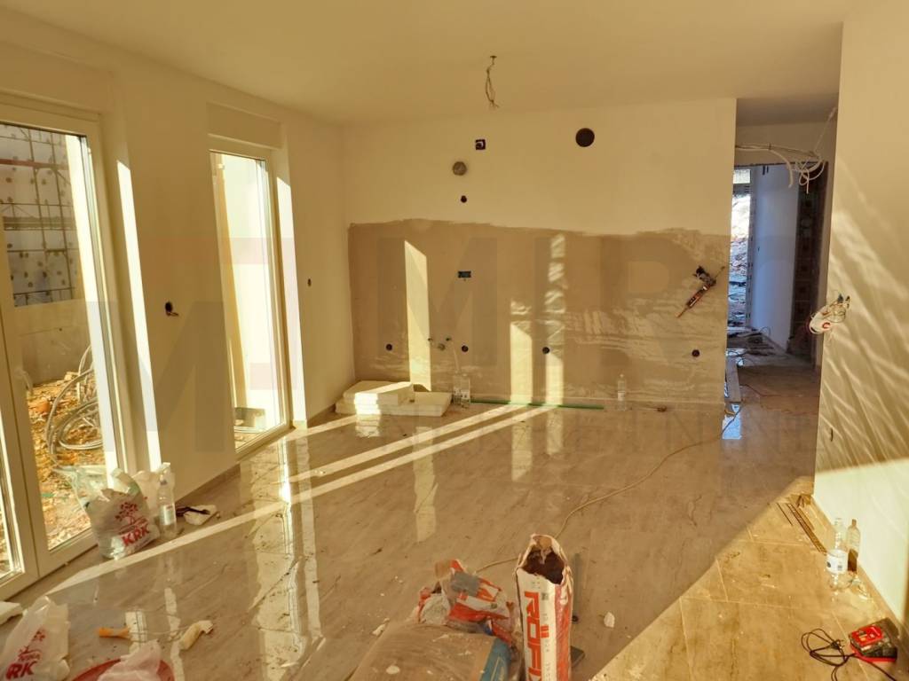 Island of Krk, Njivice, sale, new one-room apartment on the ground floor of an apartment house, 550 meters from the sea. The apartment has a living area of 50 m2 and consists of 1 bedroom, bathroom, living room and kitchen with dining room with access to a terrace of 15, 95m2. The apartment will also include a big garden 200 m2 that is currently being arranged. PVC carpentry, ceramic floor coverings were installed, and laminate flooring was installed in the rooms. The apartment is suitable for a year-round stay. One parking space belongs to him in the garden of the building. The apartment is included in the VAT system and the buyer is exempt from paying real estate sales tax of up to 3%. The seller of the real estate guarantees proper ownership documentation. The agency Miro nekretnine will provide you with all the necessary services during the registration and transfer of the property in your name. Visit us and find the square footage of your home!