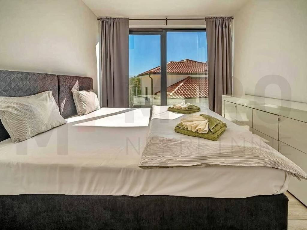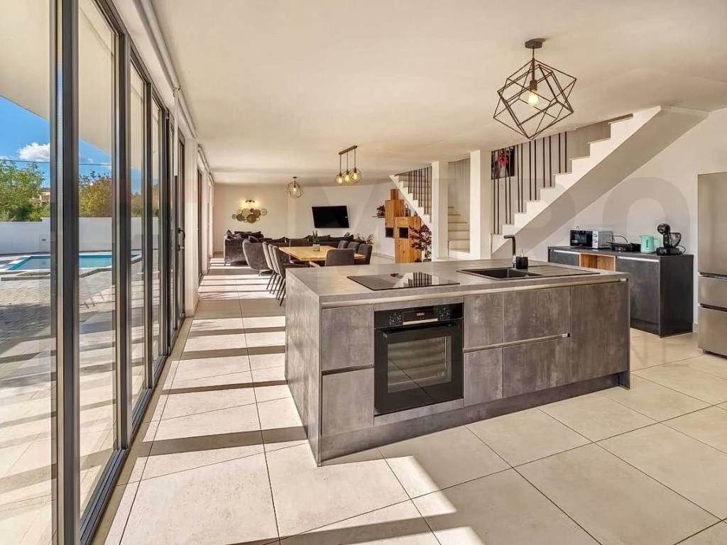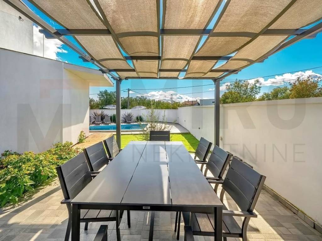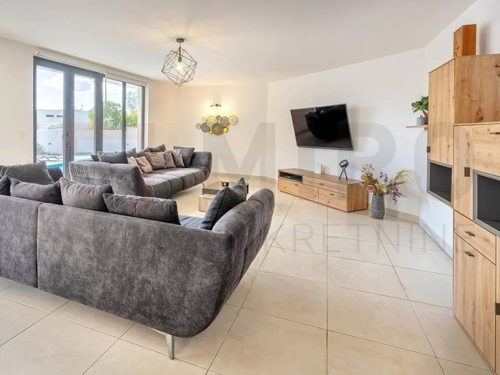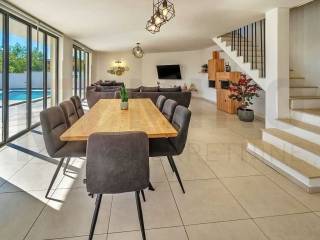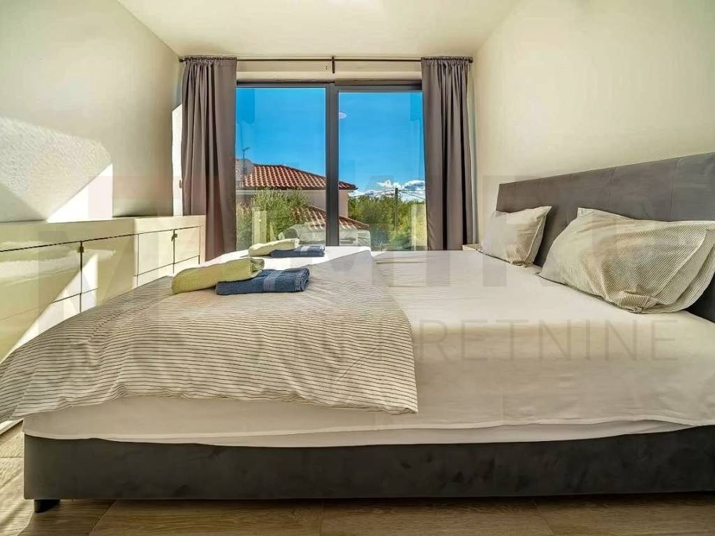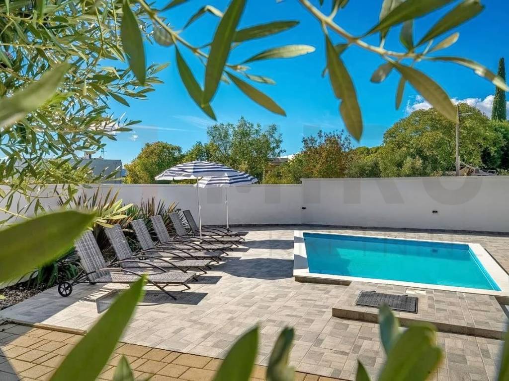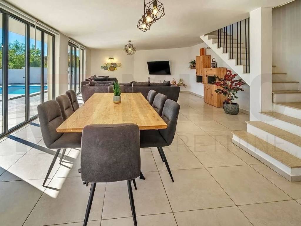 Island of Krk, Krk area, detached house with swimming pool for sale in a quiet location. The house consists of a ground floor and an upper floor, and has an area of ​​165 m2. On the upper floor there are four bedrooms, each with its own bathroom, and each with access to a terrace. An internal staircase leads to the ground floor, where there is a storage room, a guest toilet, and an open space area that includes a kitchen with a dining area and a living room, with access to the garden. The garden has an area of ​​403 m2, there is a 15 m2 swimming pool, a sunbathing area, an outdoor shower, a barbecue, and a space for socializing. The house is being sold furnished, and has three parking spaces in the garden. The property is owned by a natural person and the buyer is obliged to pay real estate tax in the amount of 3%. The owner of the house guarantees proper documents. Visit us and find the square footage of your home!