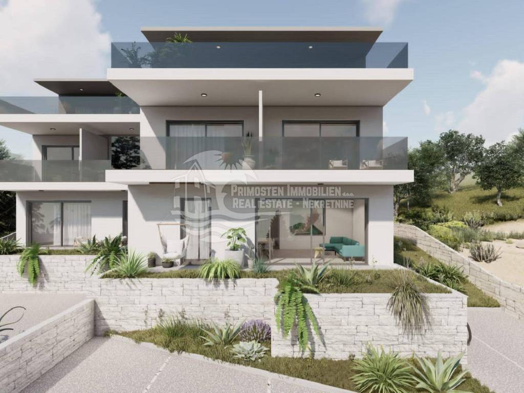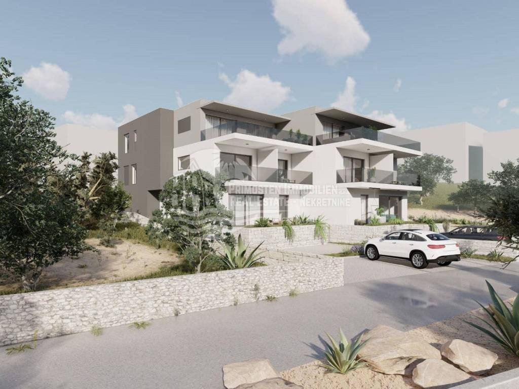 Sensational offer! New construction, two-room apartment under construction, first row by the sea. The property is located near Sibenik in a prime location and is a real opportunity for potential buyers. The three-room apartment is part of a semi-detached complex consisting of two apartment buildings. The buildings extend over three floors, each of which has a total of five residential units. The apartment is located on the first floor and has a brutto area of 64 m². The netto living area is 52 m² and has the following layout: hallway, living room, kitchen, two bedrooms, bathroom, toilet and terrace. It has a fully developed infrastructure (electricity, water, sewerage). The buildings are built according to the latest construction standards, the apartments are air-conditioned and equipped with electric underfloor heating in the bathrooms. There is a parking space in the complex and it is sold unfurnished. For additional information, contact us by email or phone.