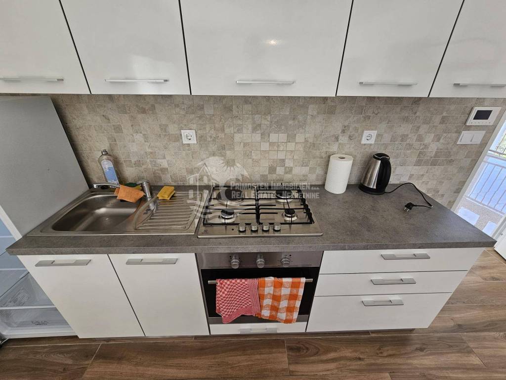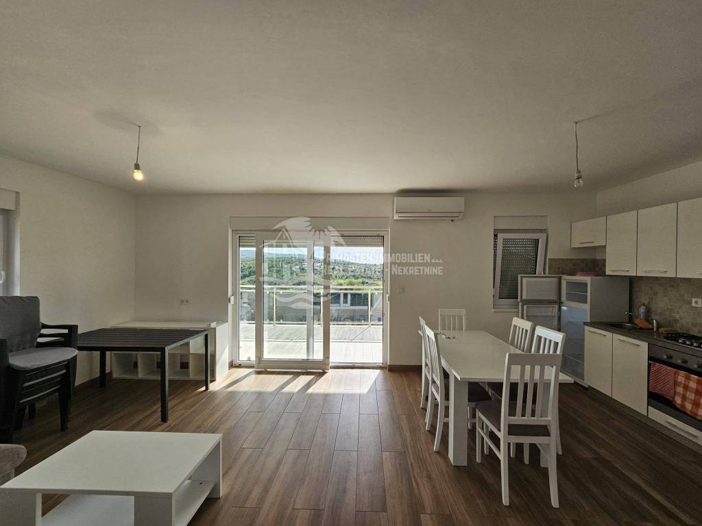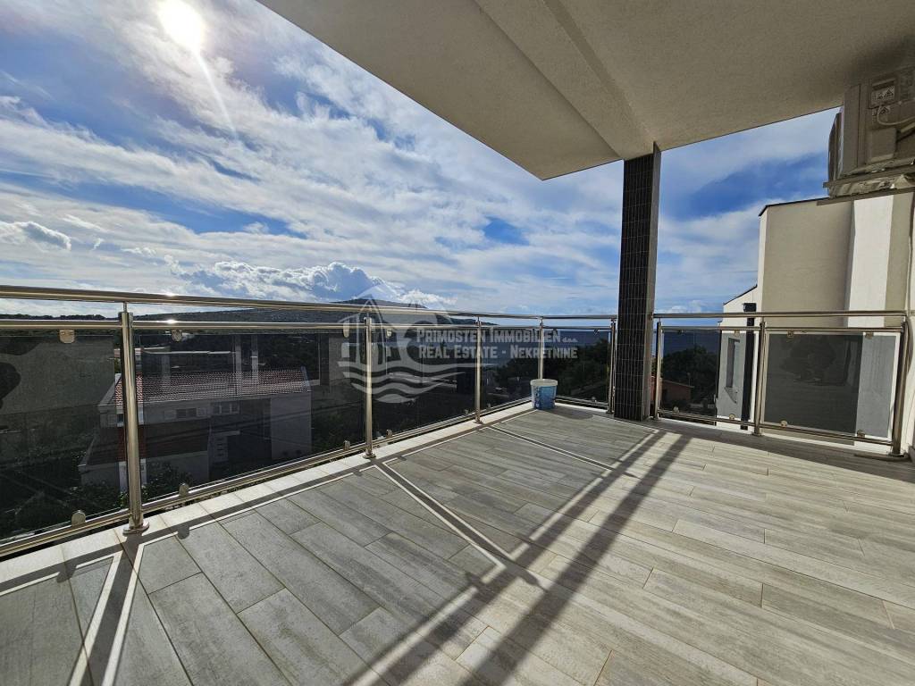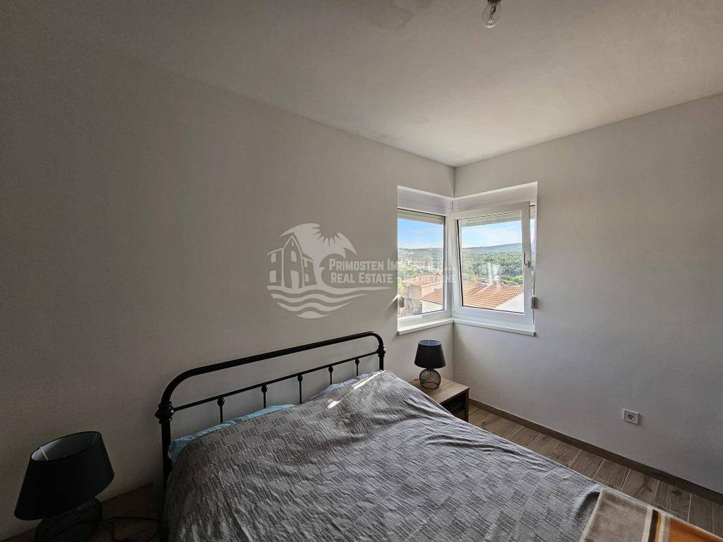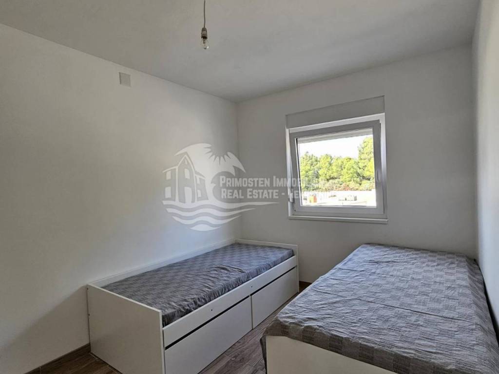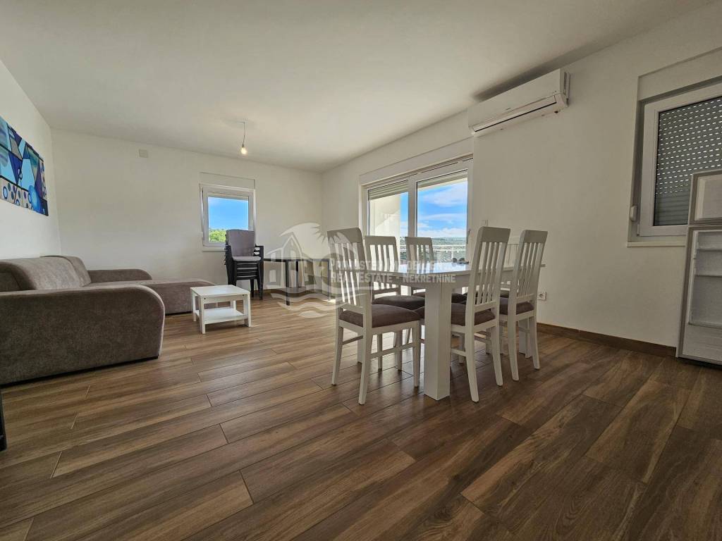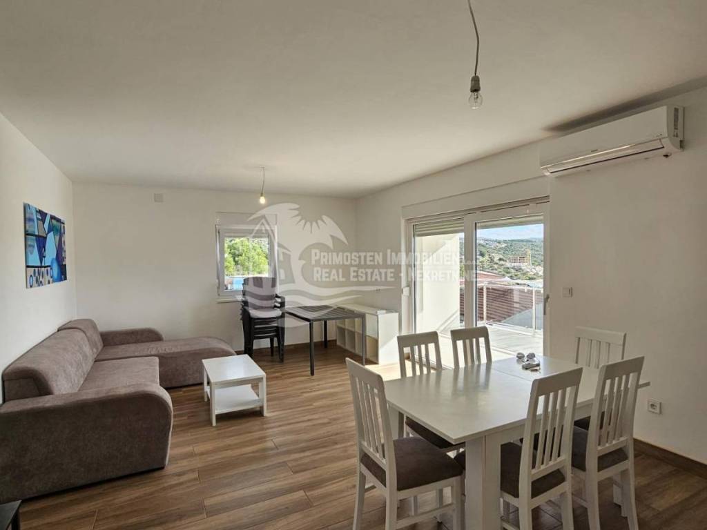 The new apartment in Primosten was built in 2021 and is in a top location. The apartment is on the second floor and is located in a residential building with a total of six residential units. The rooms are divided into a spacious and air-conditioned kitchen-living room, covered balcony with unobstructed sea views, hallway, two bedrooms and a bathroom. The technical equipment includes air conditioning and a hands-free system. The apartment is sold furnished and was not rented to tourists. The distance to the sea is 250m and to the center of Primosten approx. 850 m.